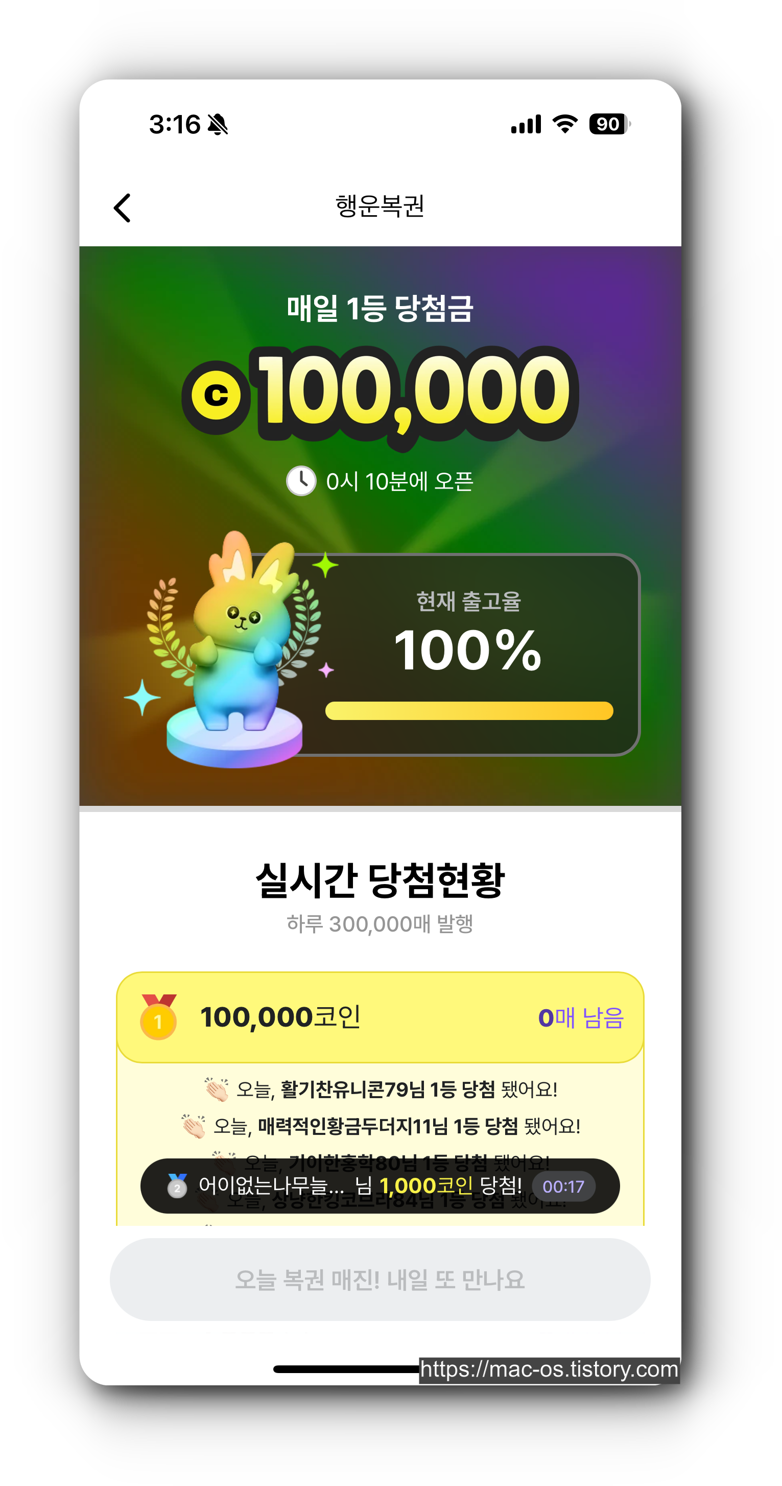 매일 0시 10분에 오픈하는 복권 컨텐츠