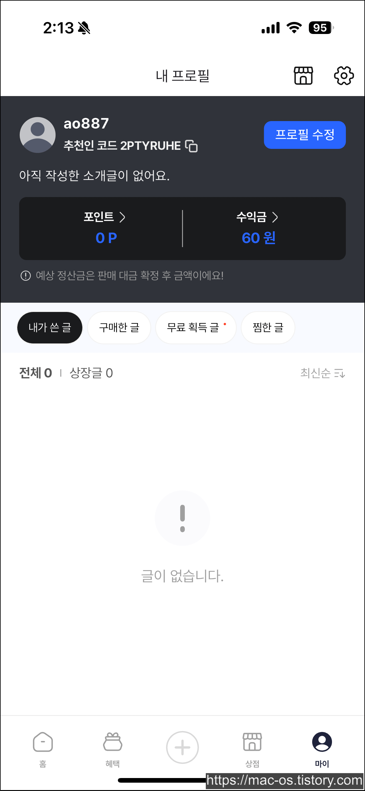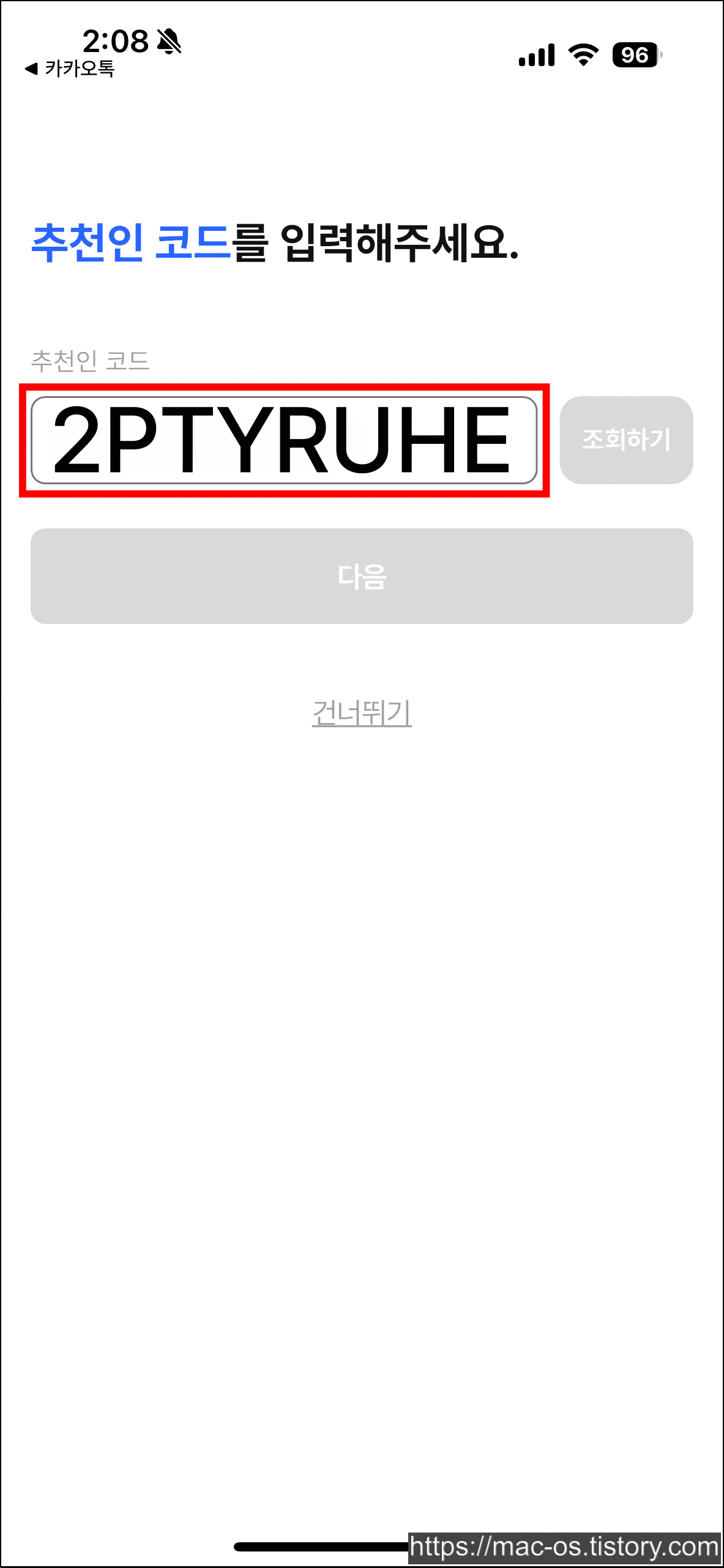 - 가입하면서 추천인 코드 칸에 2PTYRUHE를 입력한다.
