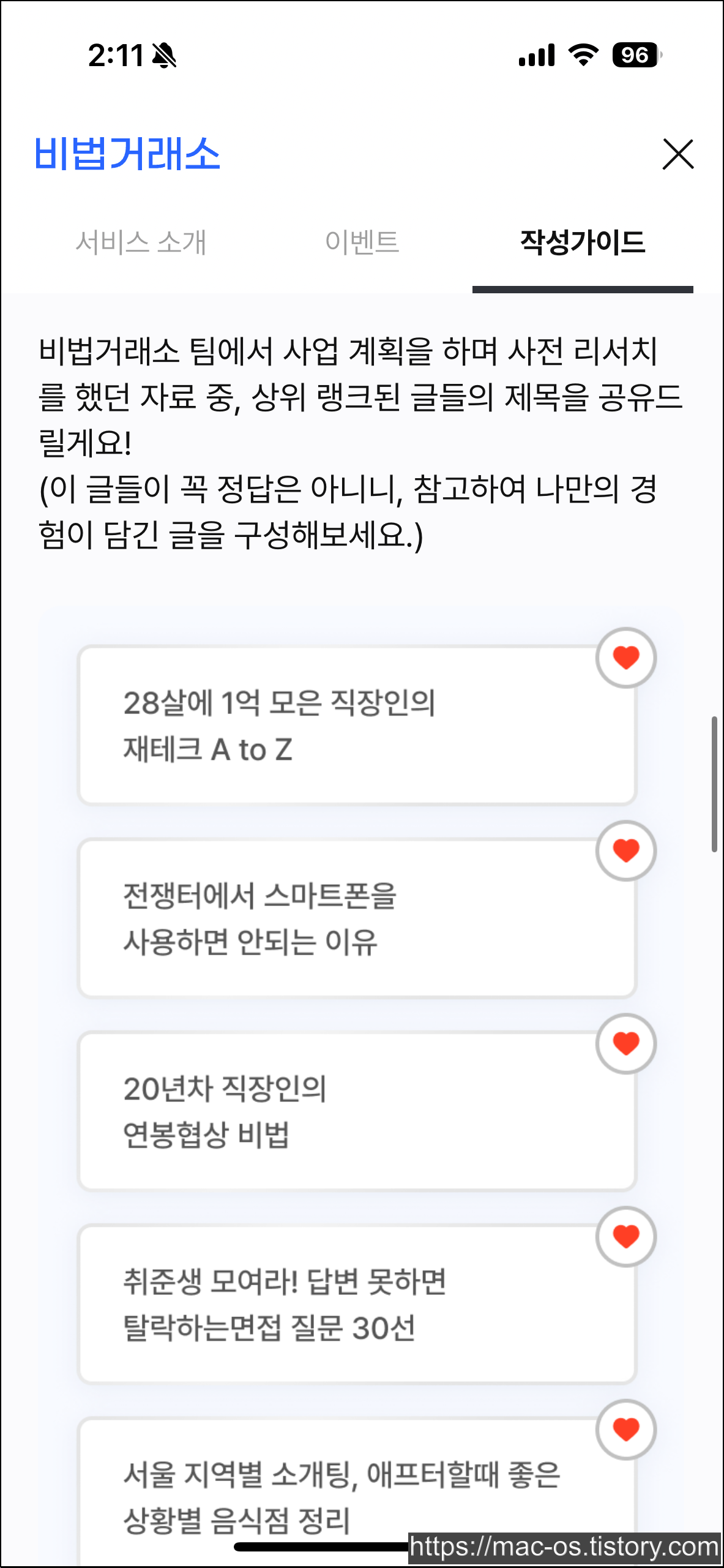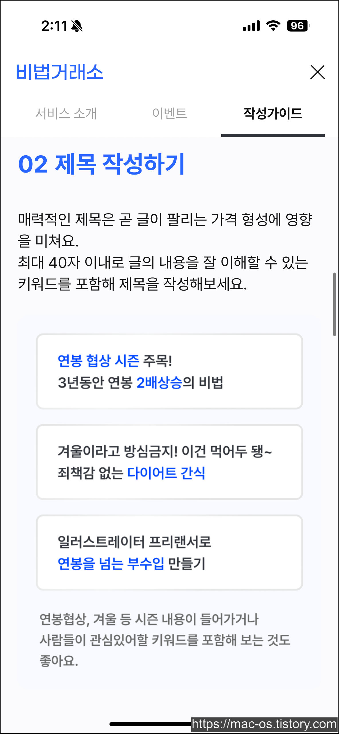 매력적인 제목과 서문을 작성하는 것이 비법글을 작성하는 데 도움이 될 수 있습니다. 비법거래소 팀에서 사업 계획을 하며 사전 리서치를 했던 자료 중, 상위 랭크된 글들의 제목을 공유하니 참고하면 좋습니다.