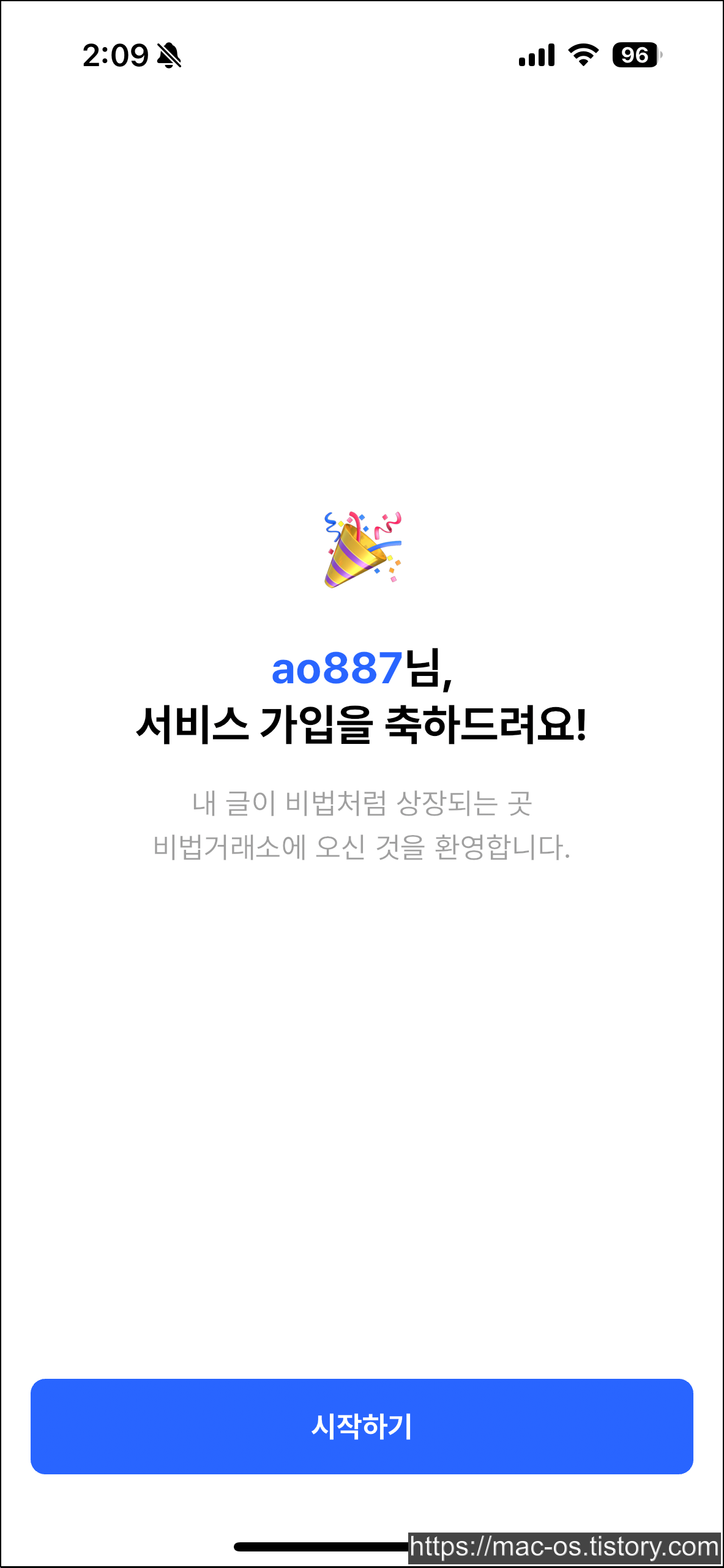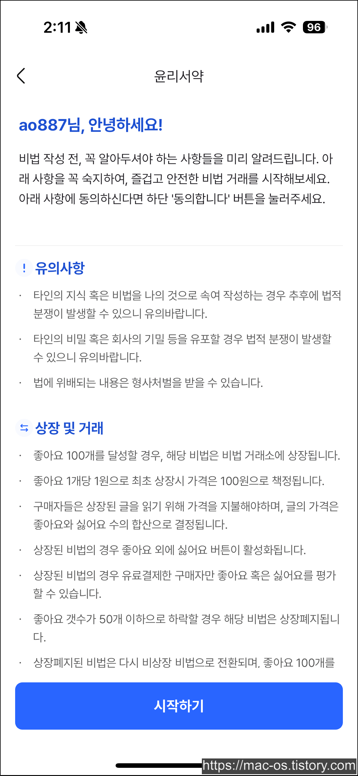 비법거래소는 앱스토어와 구글 플레이 스토어에서 설치할 수 있습니다. 앱을 실행하고 다음을 눌렀습니다.