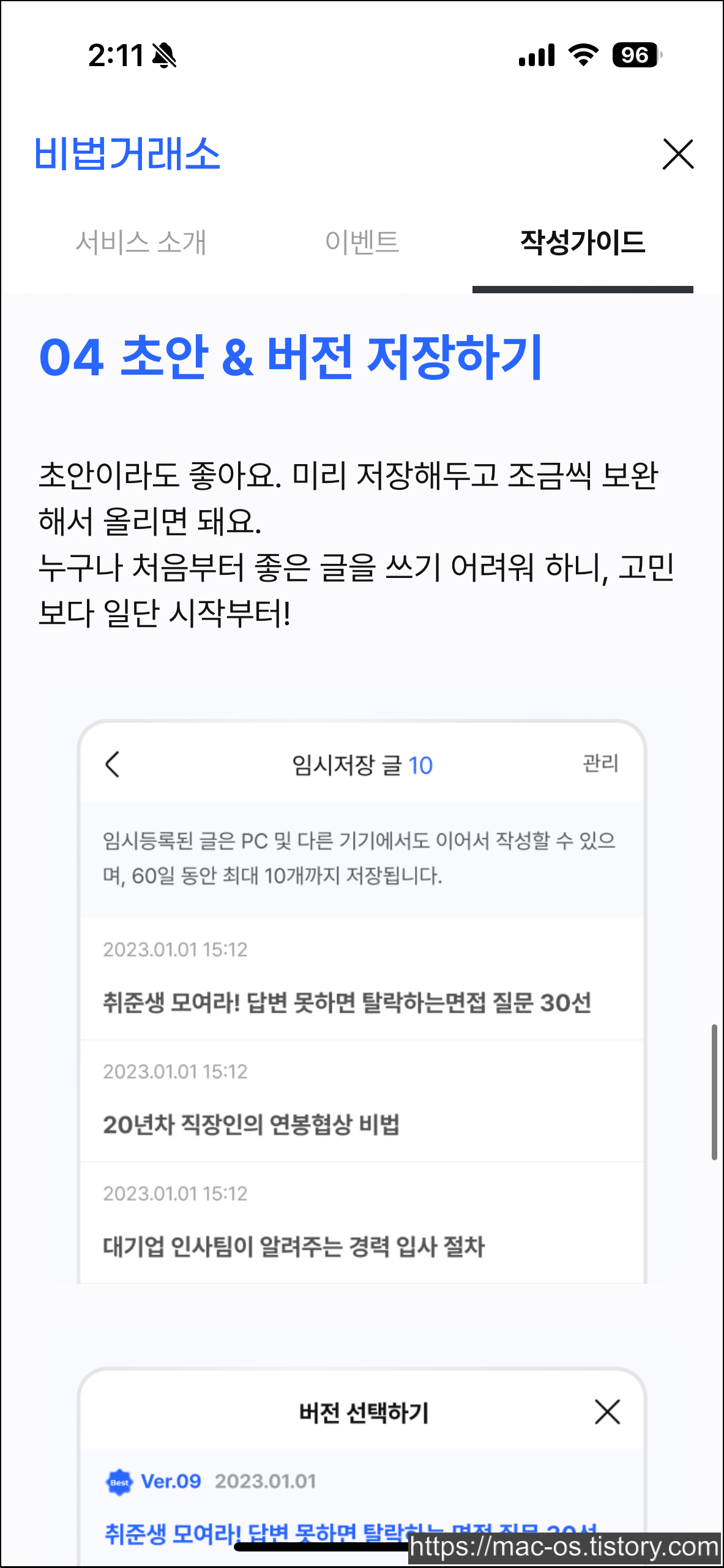 서문을 작성하고, 초안과 버전을 저장하는 기능도 있습니다.