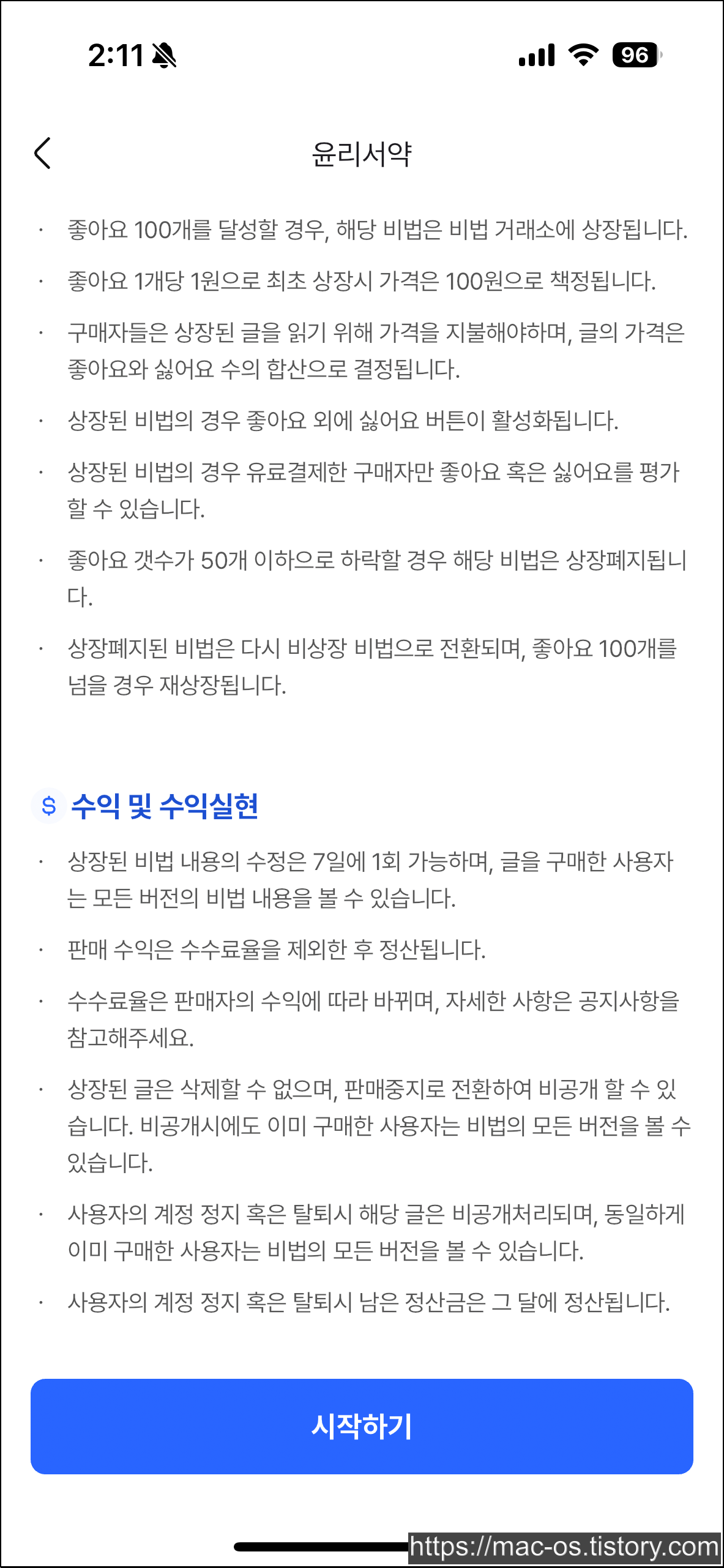 좋아요 100개를 달성하면 해당 비법은 비법 거래소에 상장되고, 좋아요 1개당 1원으로 최초 상장시 가격은 100원으로 책정됩니다. 구매자들은 상장된 글을 읽기 위해 가격을 지불해야하며, 글의 가격은 좋아요와 싫어요 수의 합산으로 결정됩니다. 상장된 비법의 경우 좋아요 외에 싫어요 버튼이 활성화됩니다.