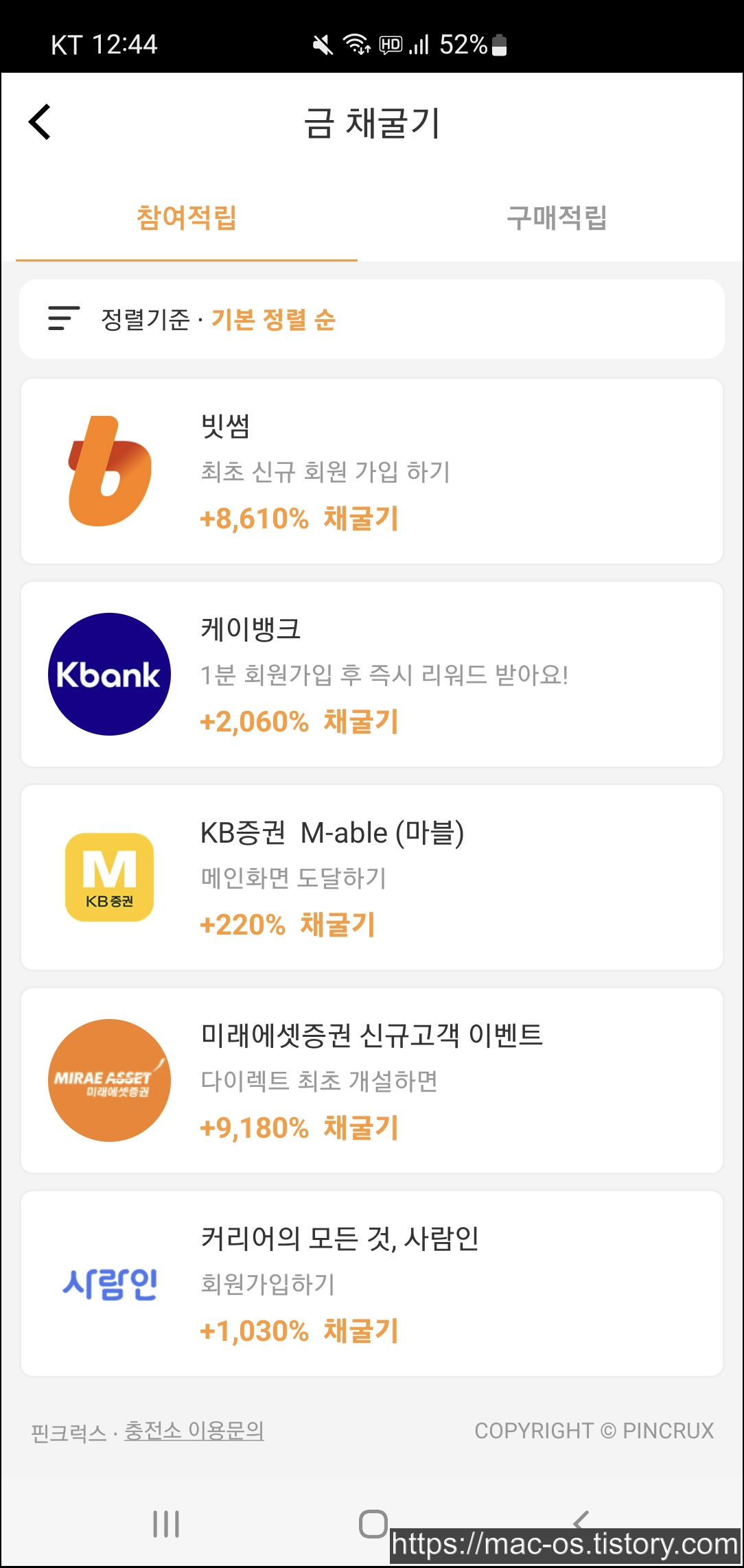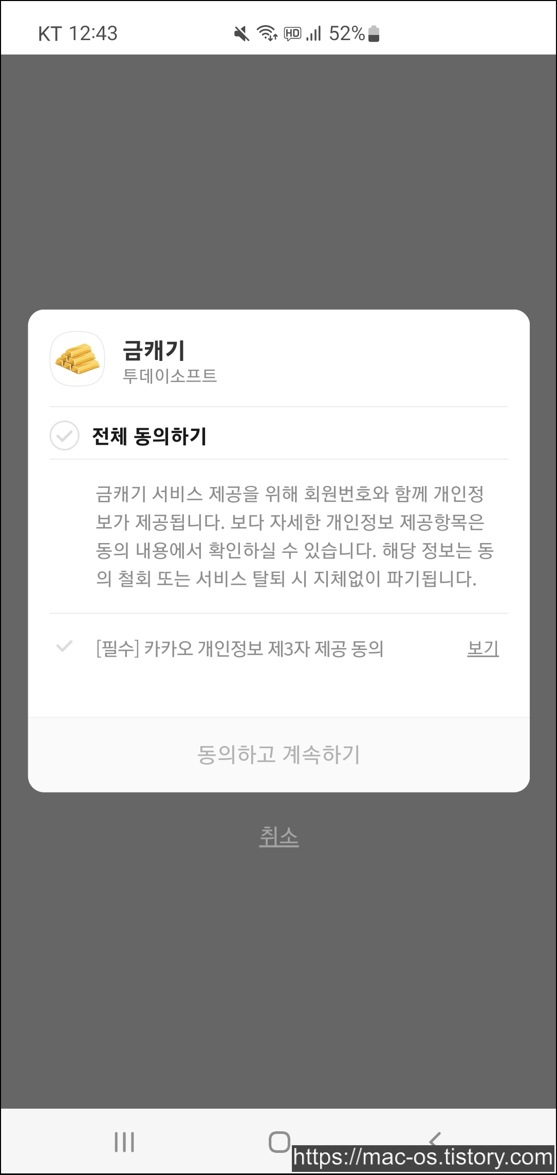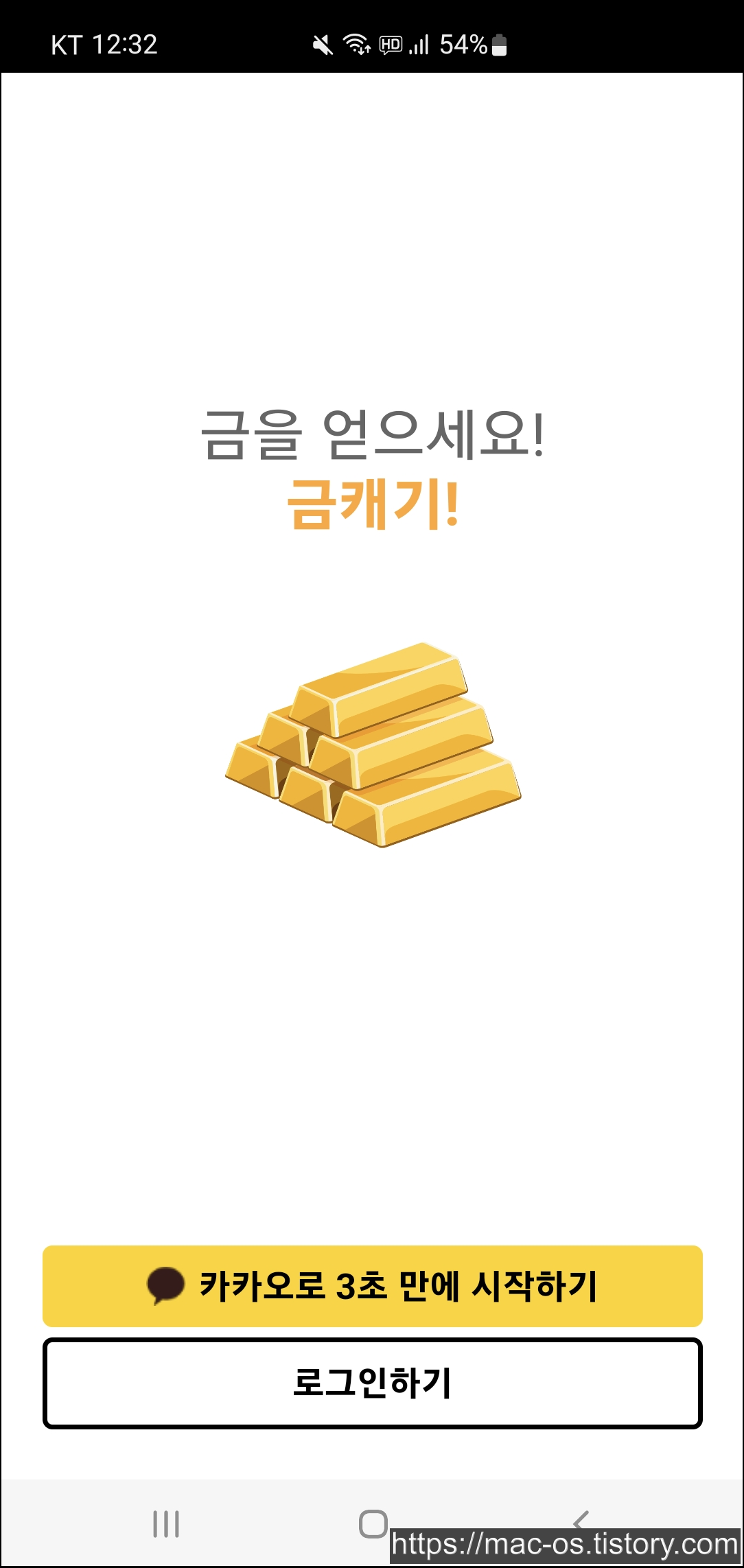 금캐기는 구글 플레이 스토어에서 설치하고 카카오 계정으로 로그인해서 가입할 수 있다.
