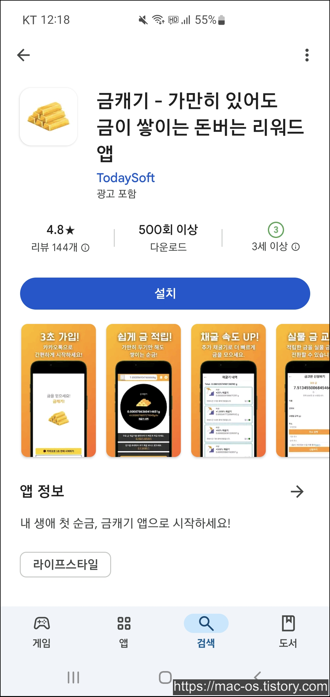 - 구글 플레이 스토어에서 금캐기 앱을 설치함