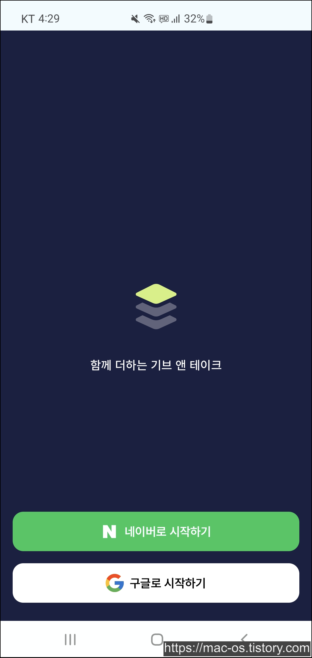 구글 플레이 스토어에서 기테 앱을 설치할 수 있다. 기테 앱은 네이버 또는 구글 계정으로 시작한다.