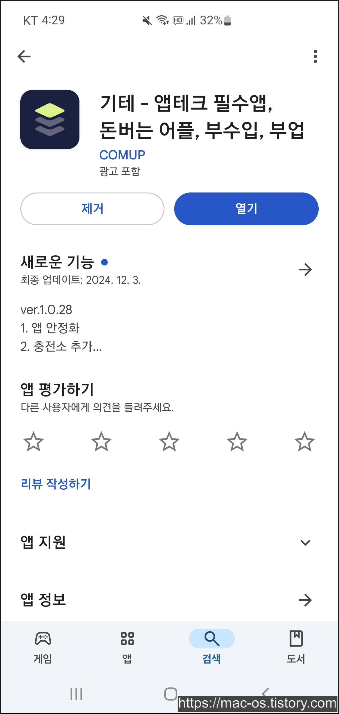 - 구글 플레이 스토어에서 기테 앱을 설치하고 실행