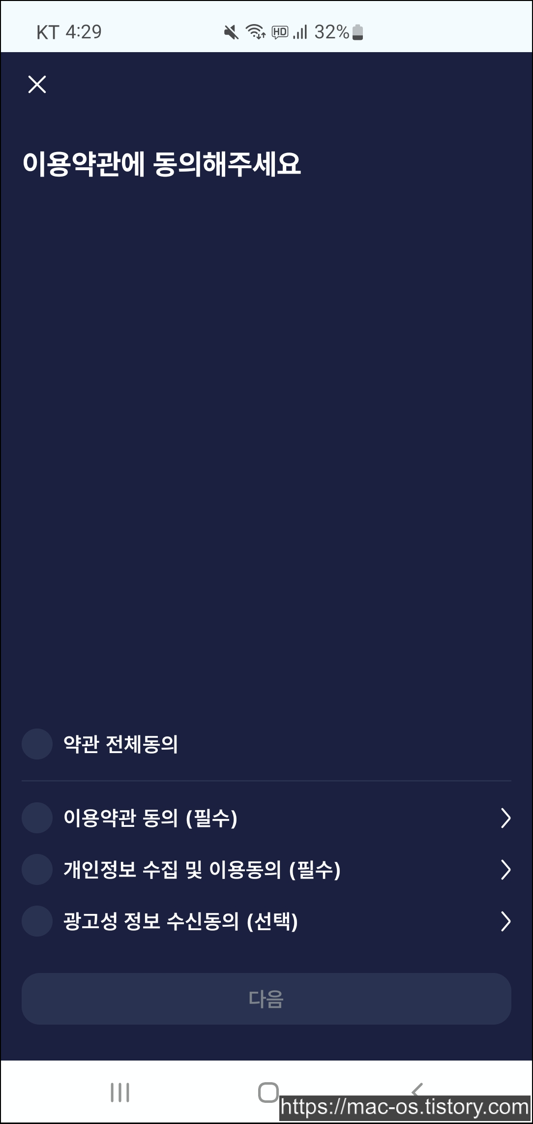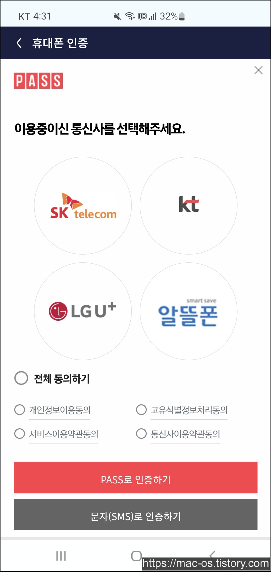 - 휴대폰 번호 인증 후 우측 상단 더보기 메뉴 클릭