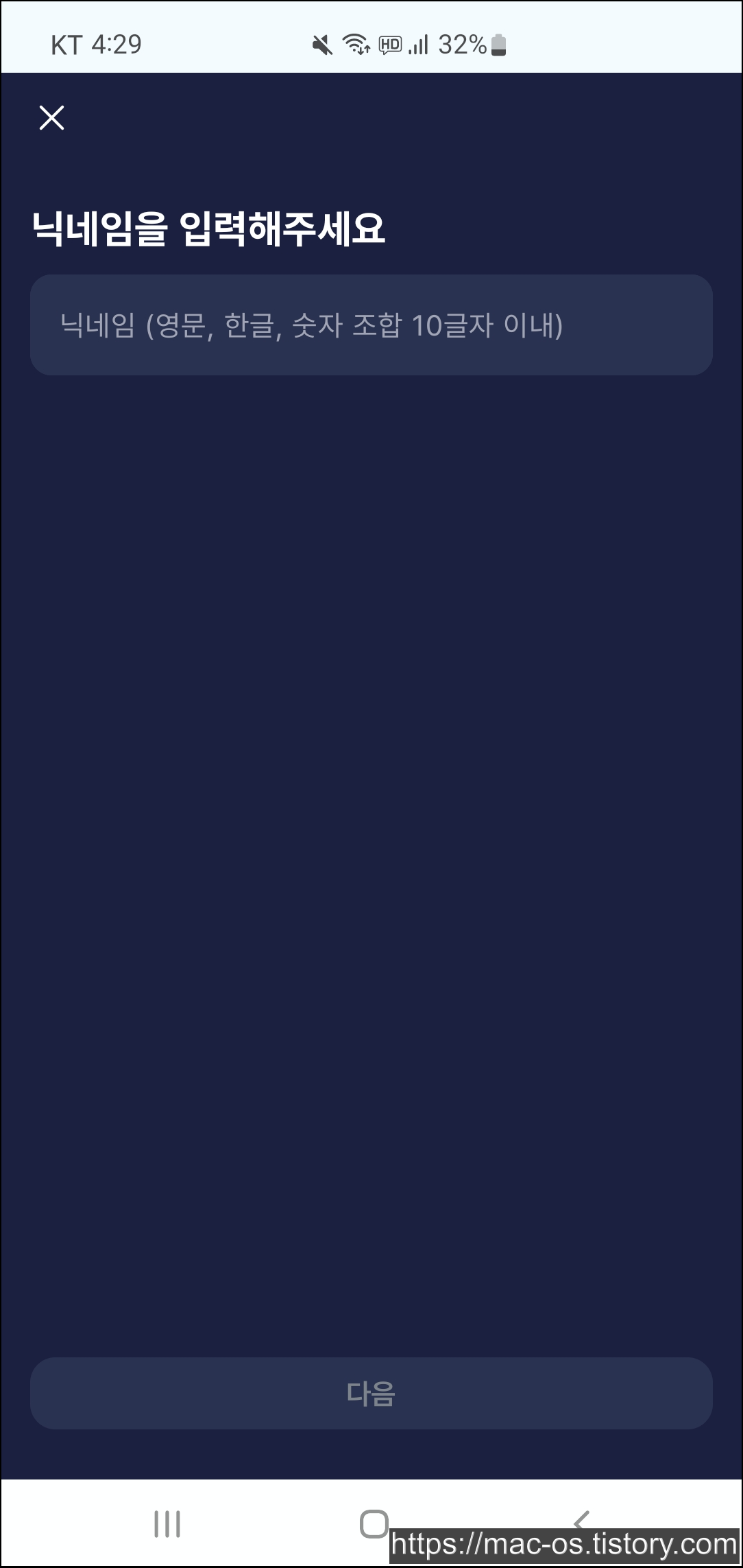 이용약관에 동의하고 닉네임을 입력한다.