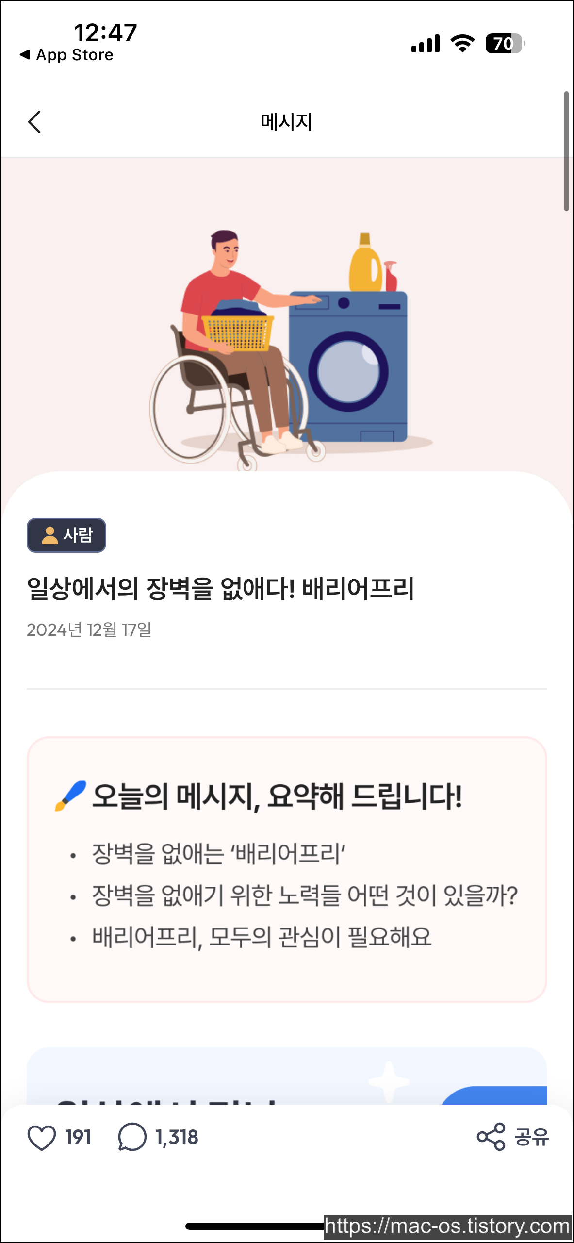 =일상에서의 장벽을 없앤다는 메시지를 눌렀는데요.