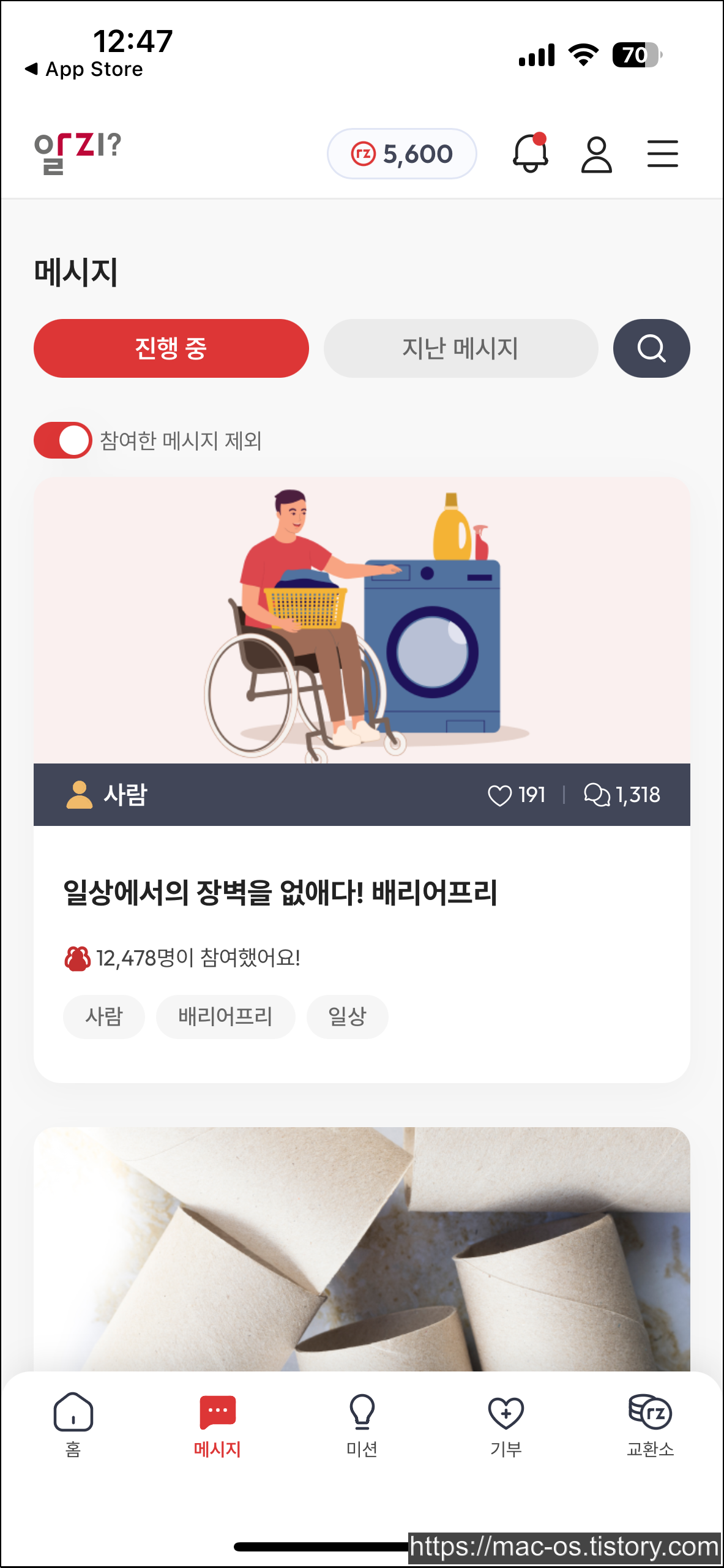 이렇게 알지에서 메시지와 미션에 참여하고 얻은