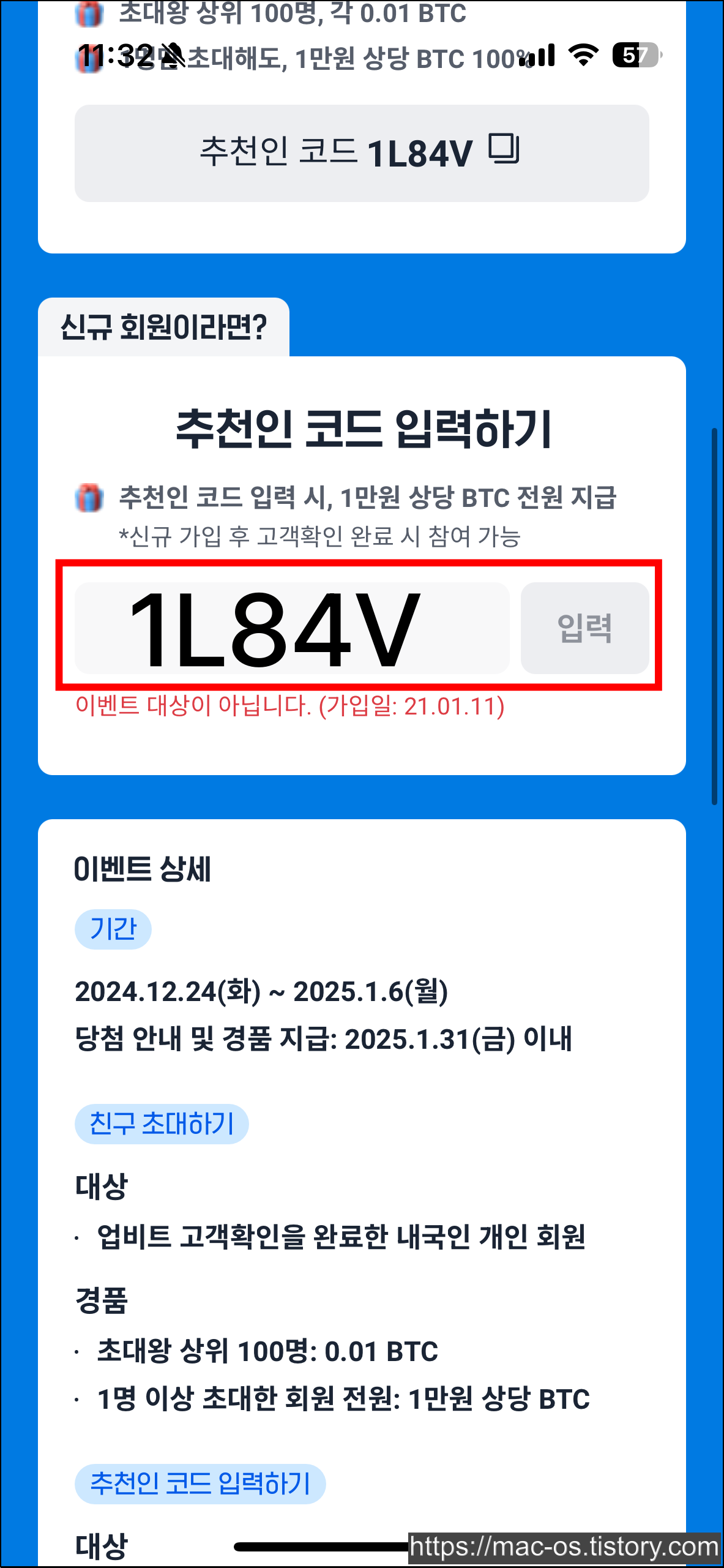 추천인 코드를 입력한 사람도 받을 수 있어서