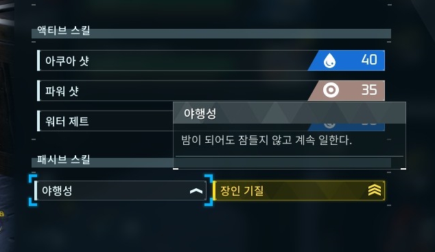 야행성은 밤이 되어도 잠들지 않고 계속 일하는 패시브인데요.