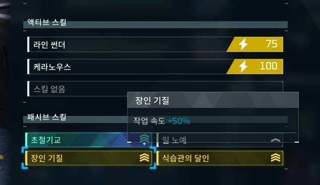 장인 기질은 작업속도를 50% 증가시키는 패시브입니다.