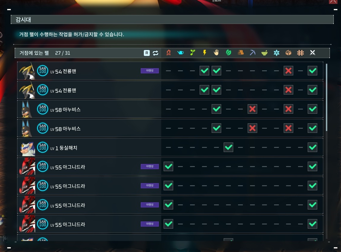 사진에 보이는 전룡맨과 아그니드라는 야행성 패시브를 가지고 있어서 저렇게 나오구요.