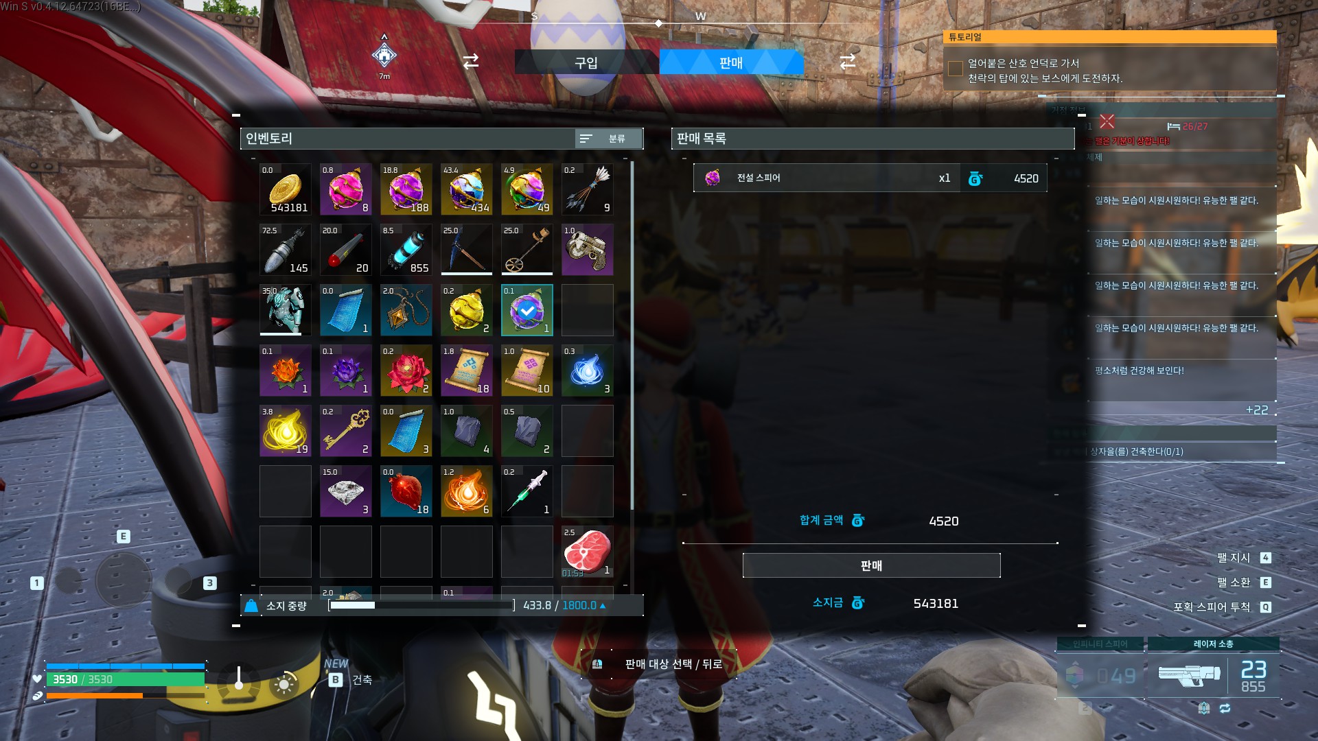 고귀 팰을 가지고 있지 않을 때, 전설 스피어를 상인한테 1개 팔면 4520원을 줍니다.