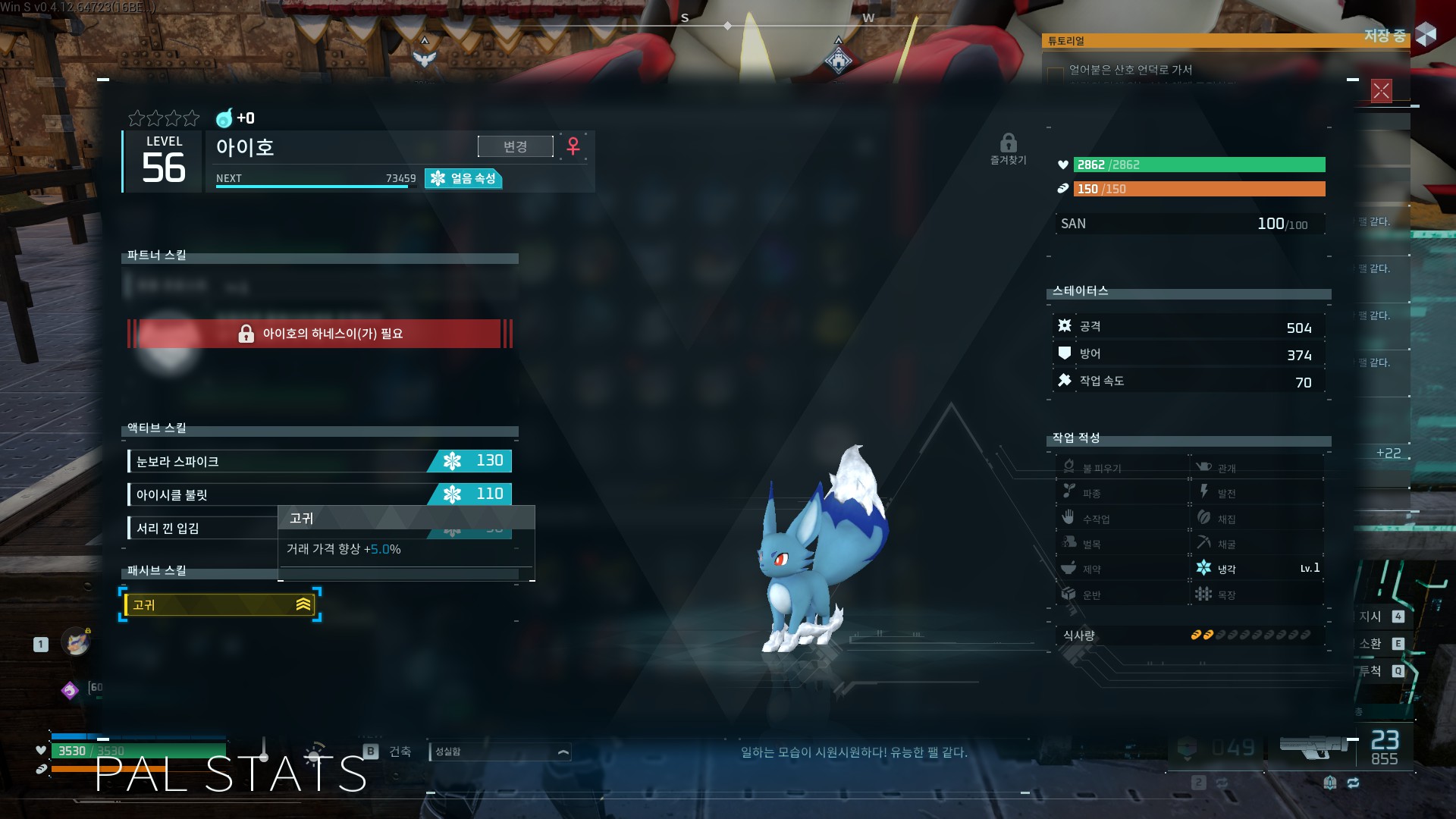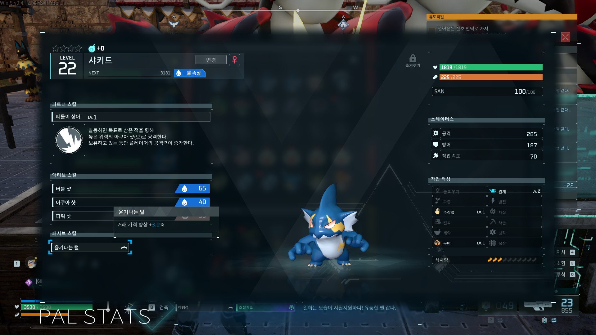 만약 고귀+윤기나는털 패시브를 가진 팰 5마리를 데리고 있으면 거래 가격이 최대 40% 향상되니까