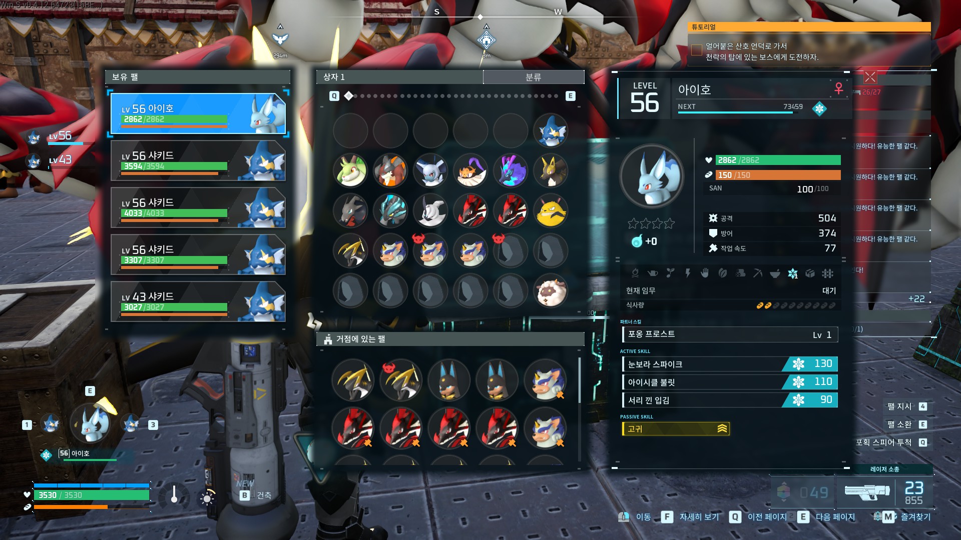 사진에 보이는 것처럼 고귀만 가지고 있는 팰 5마리를 데려왔습니다.