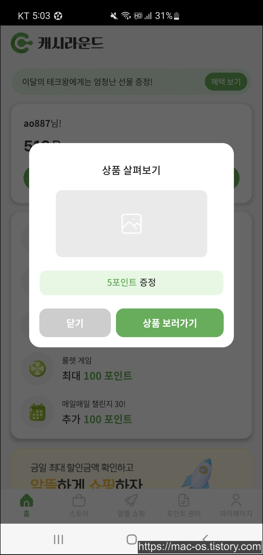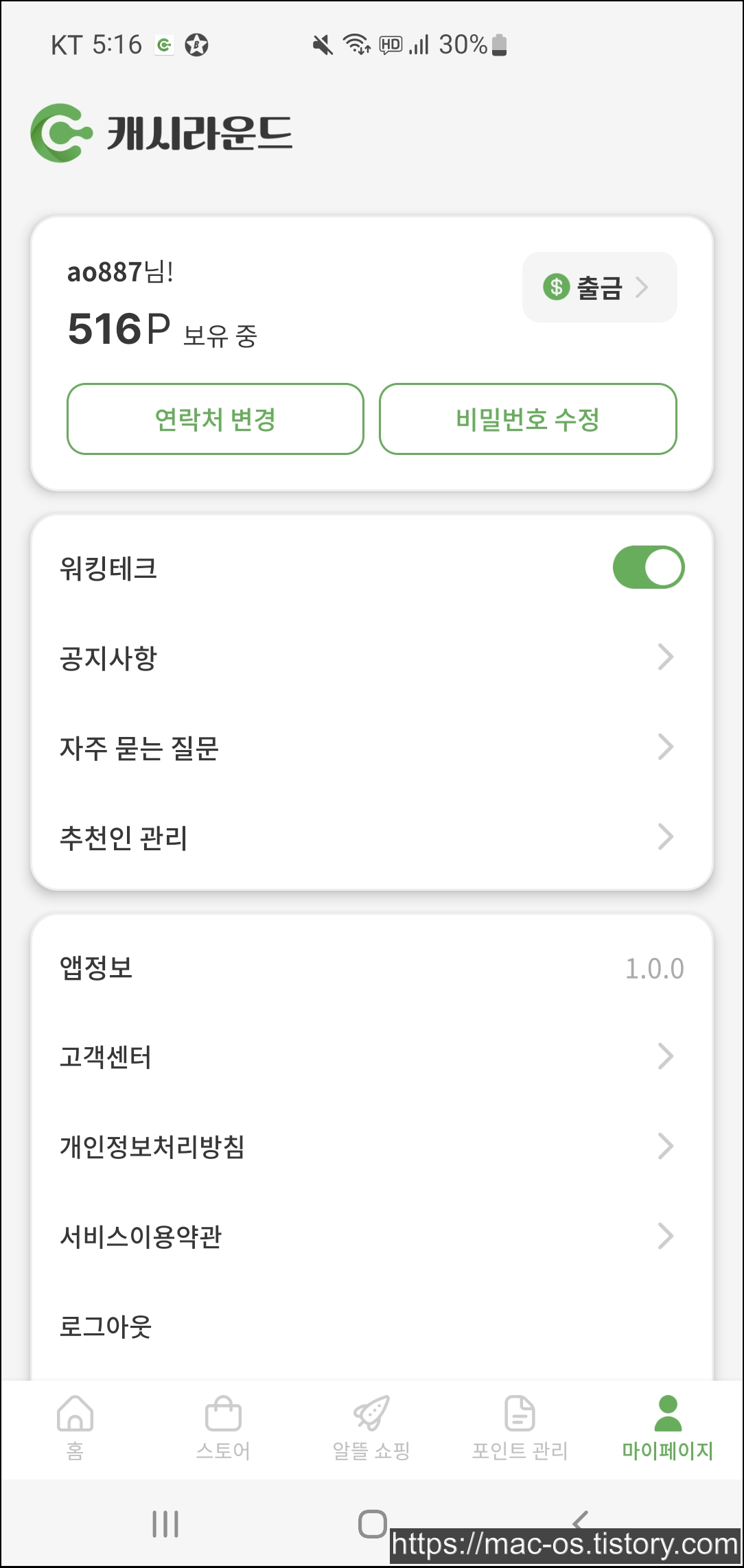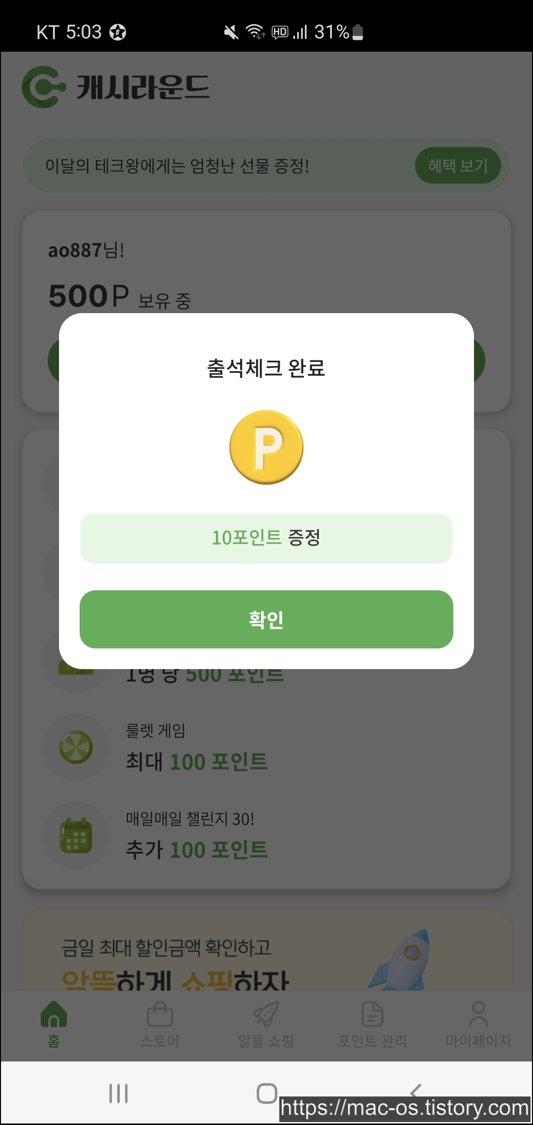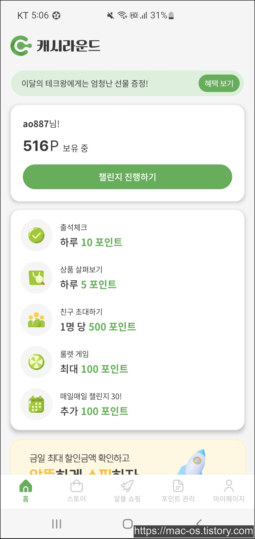 - 추천인에 D6sCov8S 입력하면 500포인트 지급