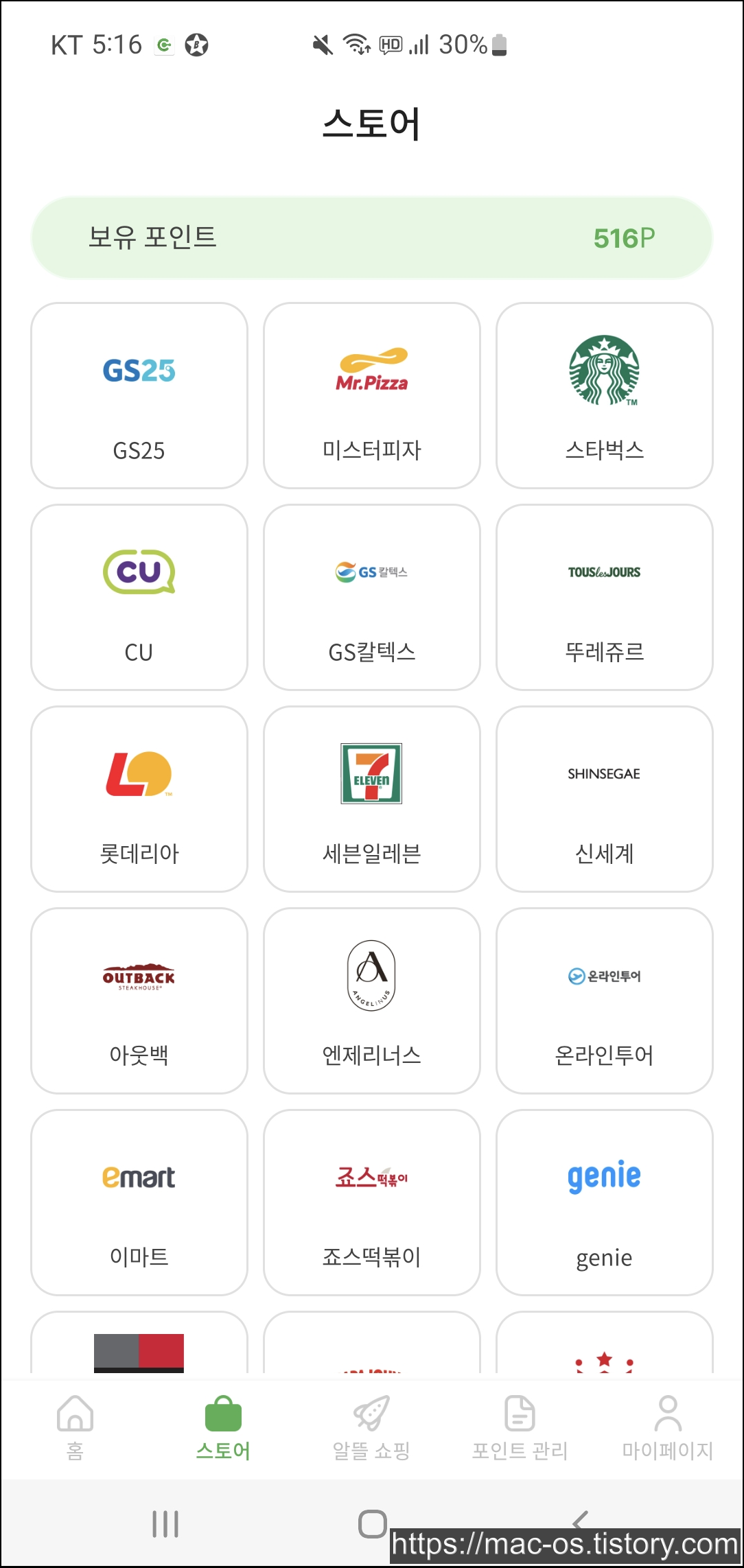 스토어로 들어오면 여러 브랜드가 있는데 여기서 마음에 드는걸 선택해서 포인트로 사면 됩니다.