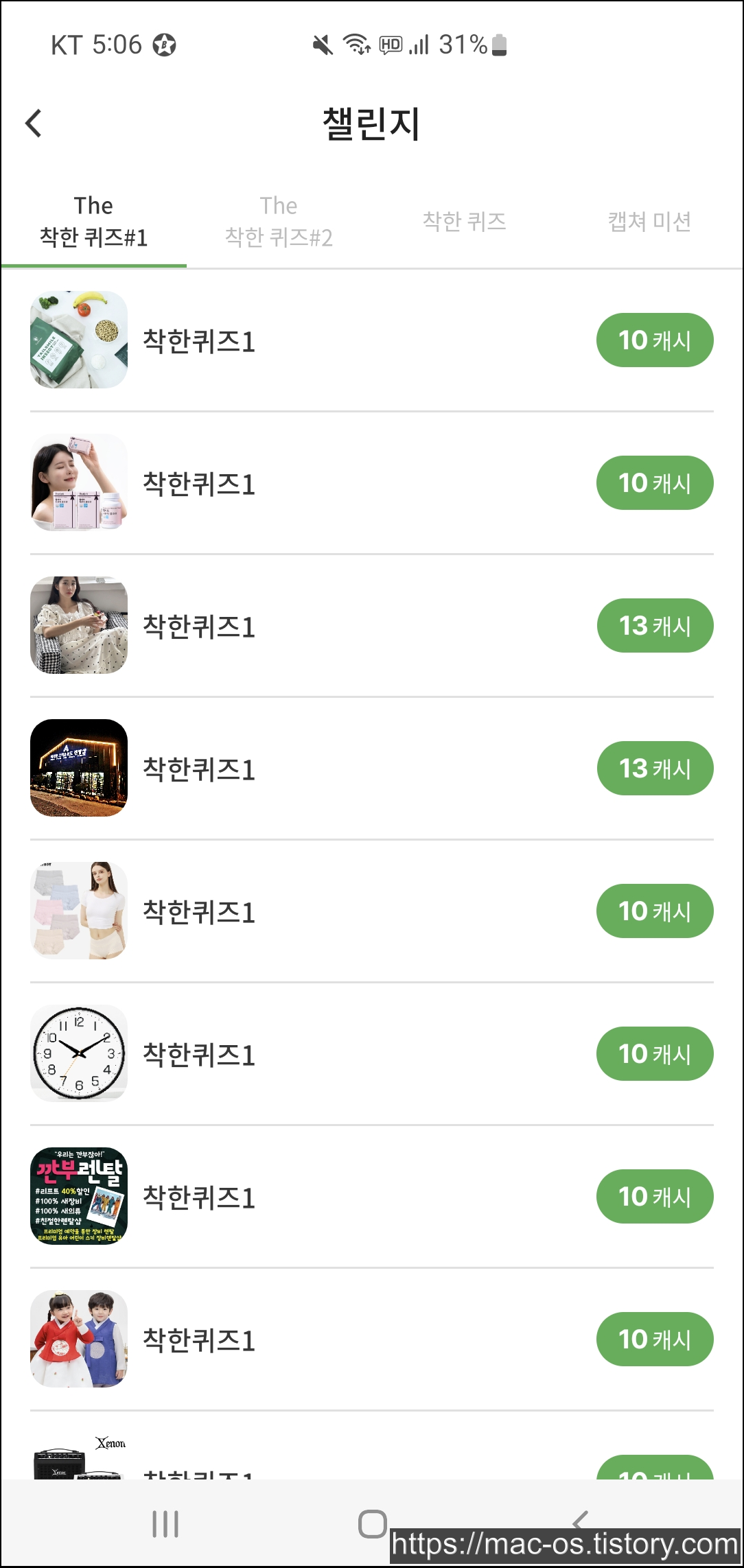 착한 퀴즈#1에 미션이 60개 정도 있는 것 같고 캡처 미션에는 4개 정도 있습니다.