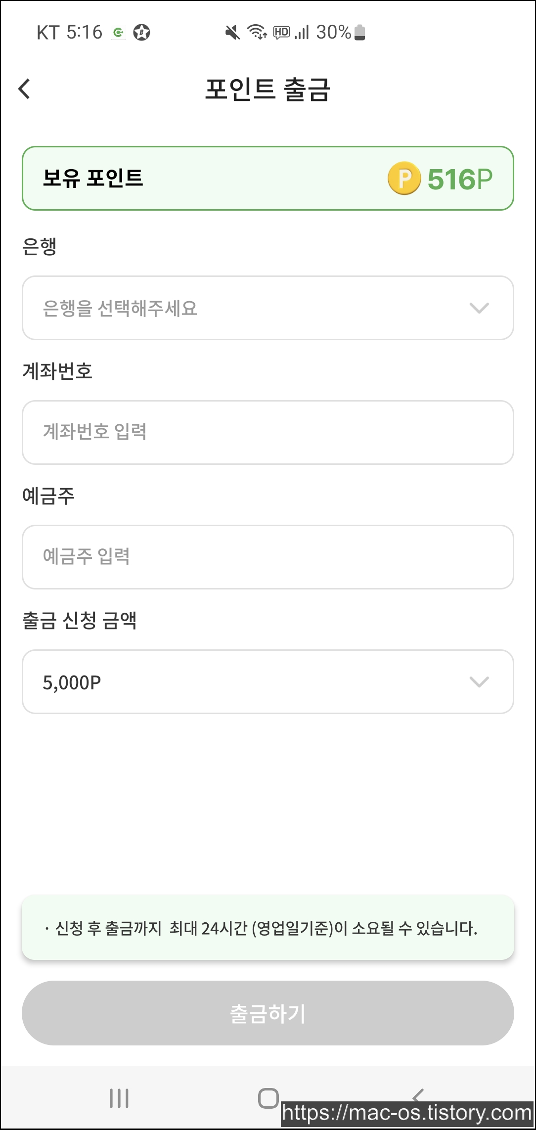 기프티콘이랑 상품권이 좀 별로다 싶으면 마이페이지에서 출금 버튼을 눌러 본인 계좌로도 받을 수 있으니 참고하세요.