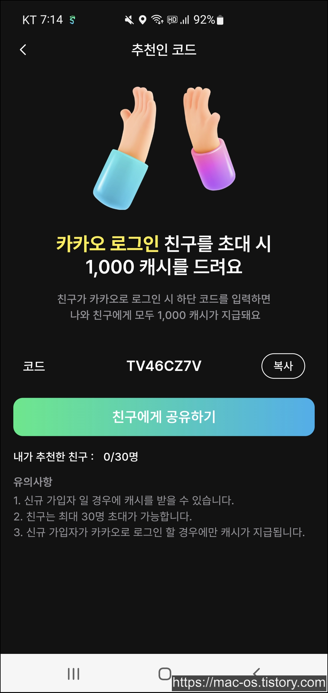 - 카카오톡 계정으로 가입해야 추천인 입력 가능