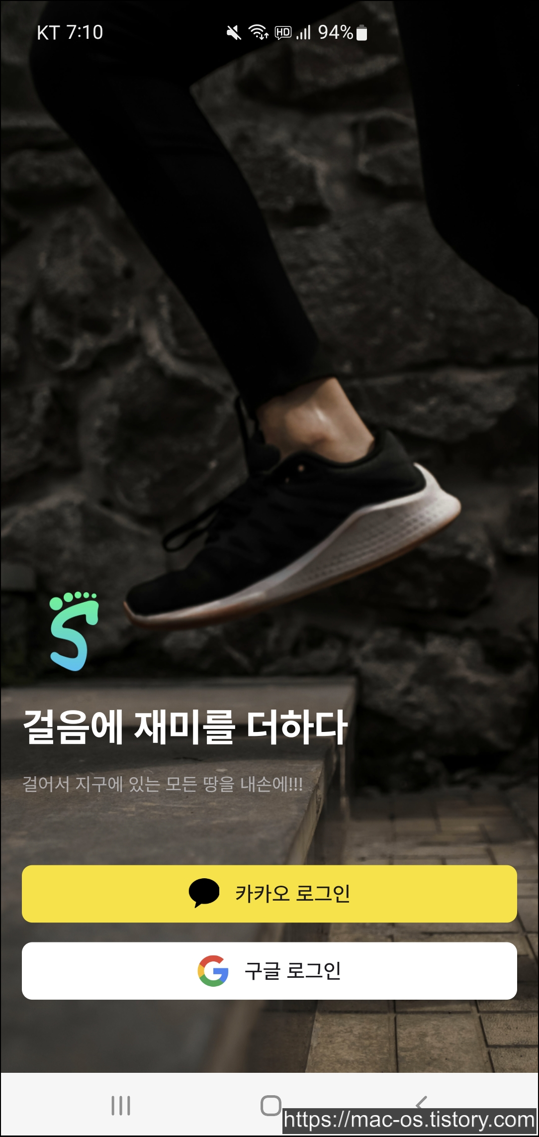 스텝어스는 구글 플레이 스토어에서 설치할 수 있고, 카카오톡 또는 구글 계정으로 로그인하게 됩니다. 여기서 카카오 로그인을 선택해야 추천인 코드를 입력하고 가입과 동시에 1000캐시를 받을 수 있습니다.