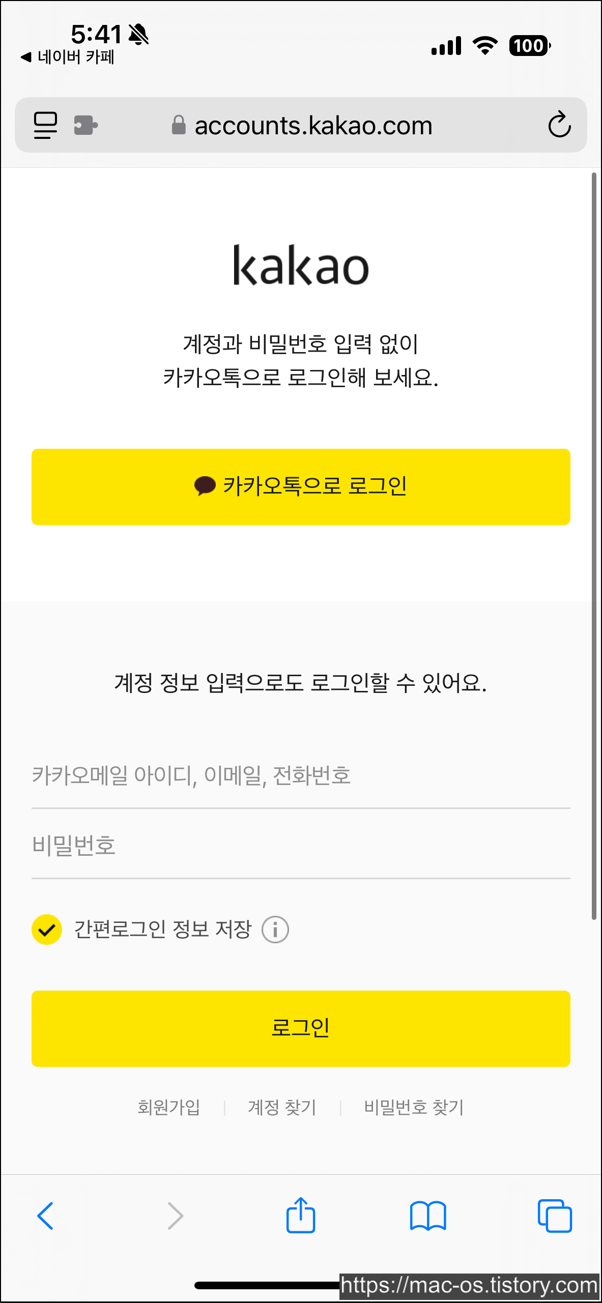 - SNS 계정으로 로그인하면 회원가입 바로 끝