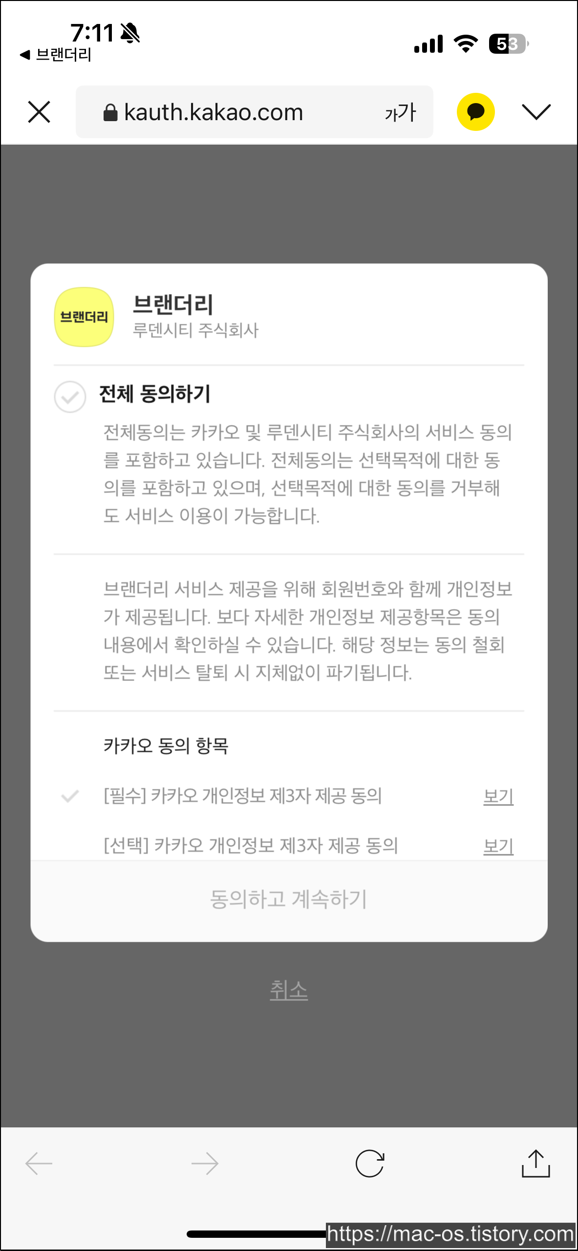 카카오, 애플, 휴대폰 번호로 가입할 수 있는데, 저는 카카오 로그인으로 가입했습니다.