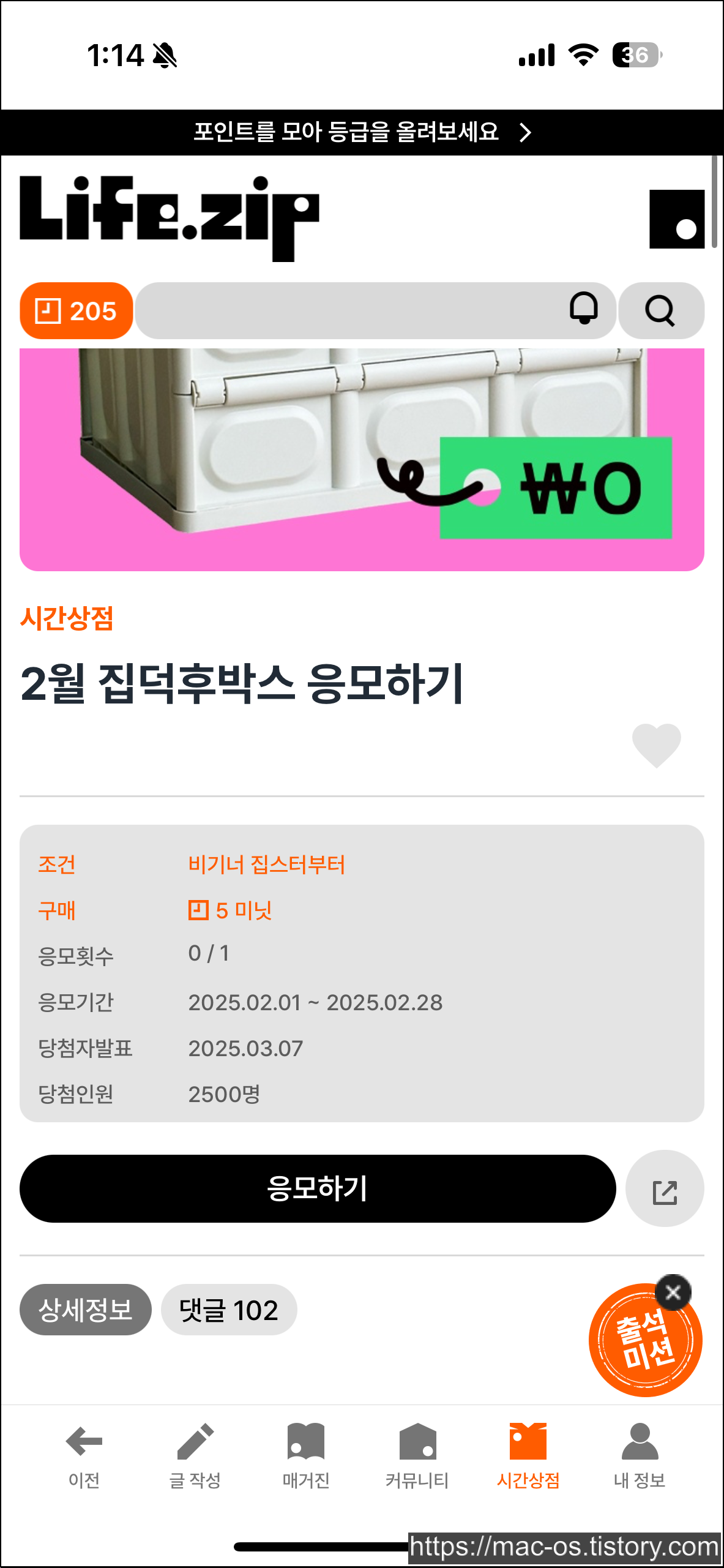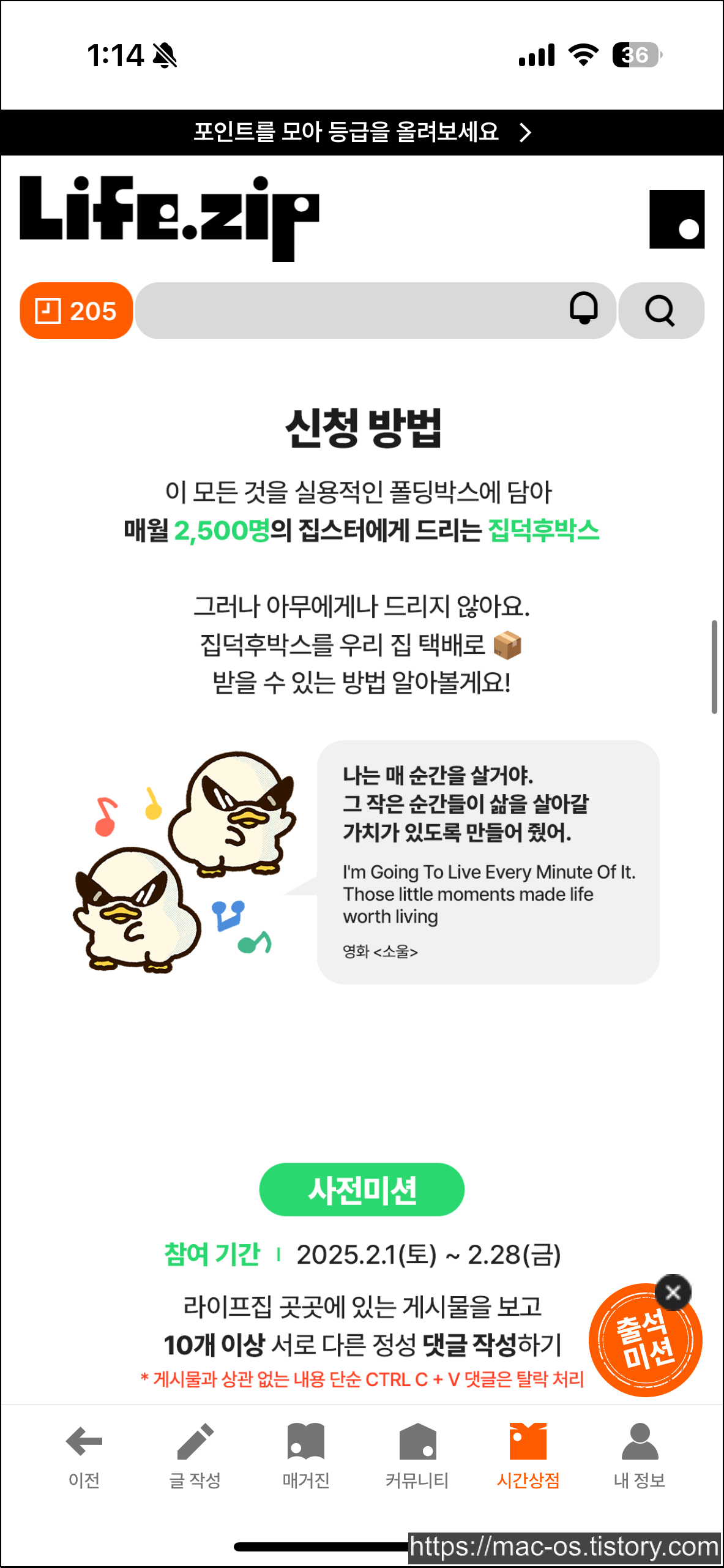 👉 응모 방법 1️⃣ 라이프집 가입 후 포인트 모으기 2️⃣ 시간상점에서 집덕후박스 응모하기 3️⃣ 추첨을 통해 당첨자 발표 🎉