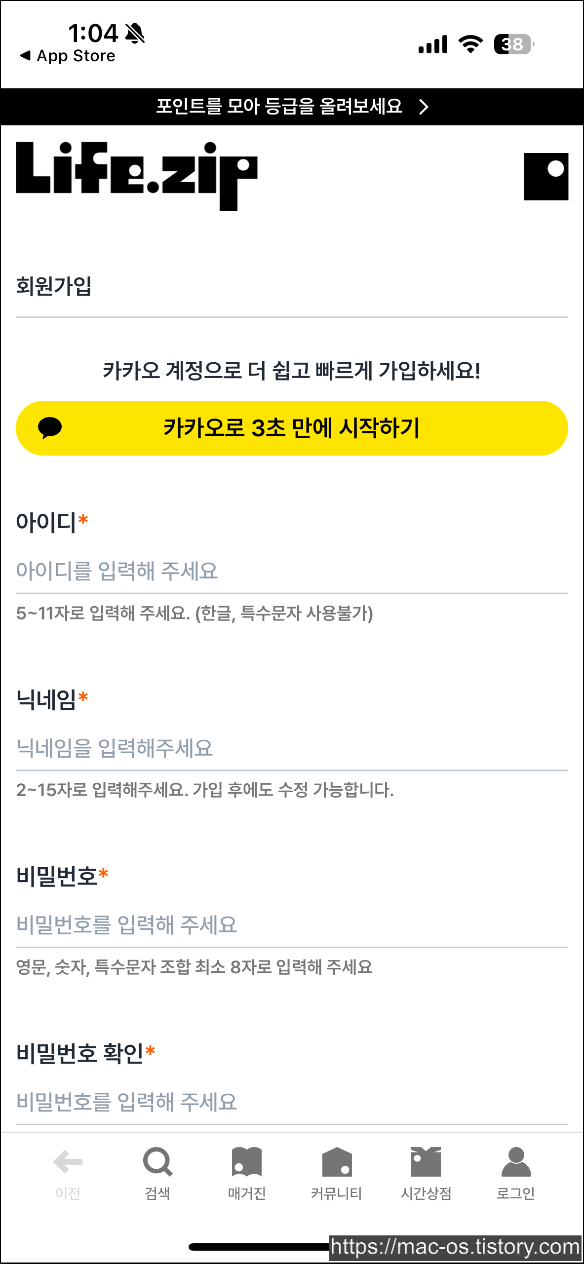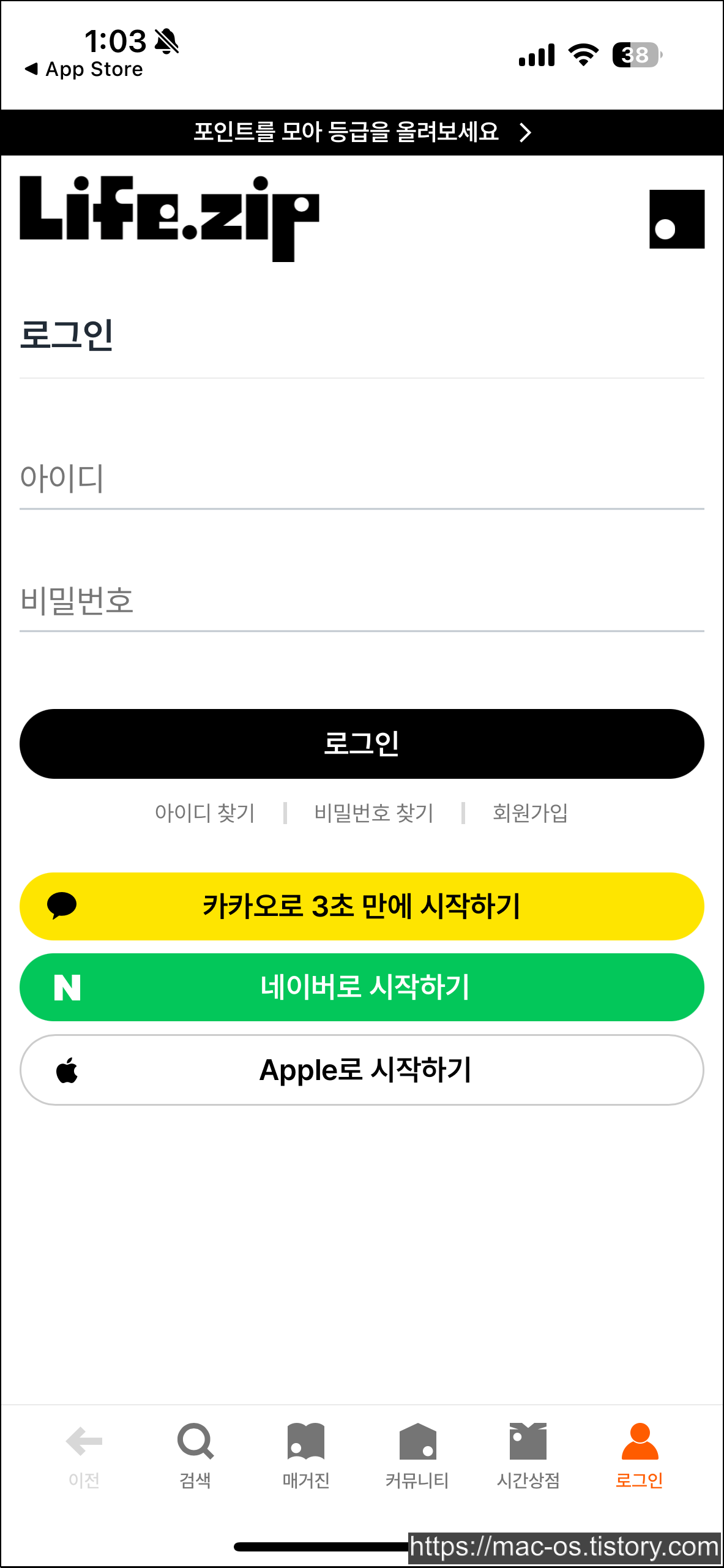 라이프집은 앱스토어에서 설치할 수 있고, 로그인 페이지에서 카카오 계정으로 시작하면 돼.