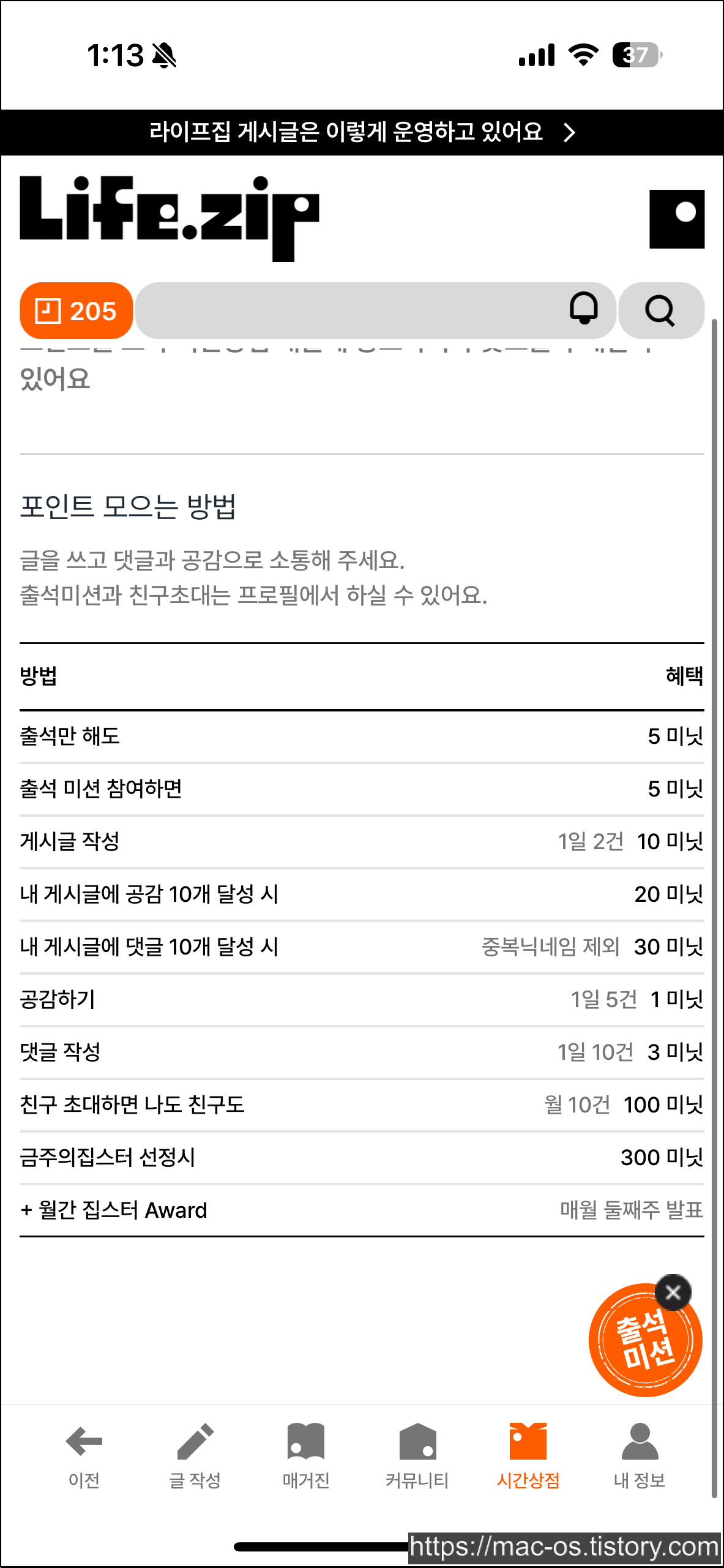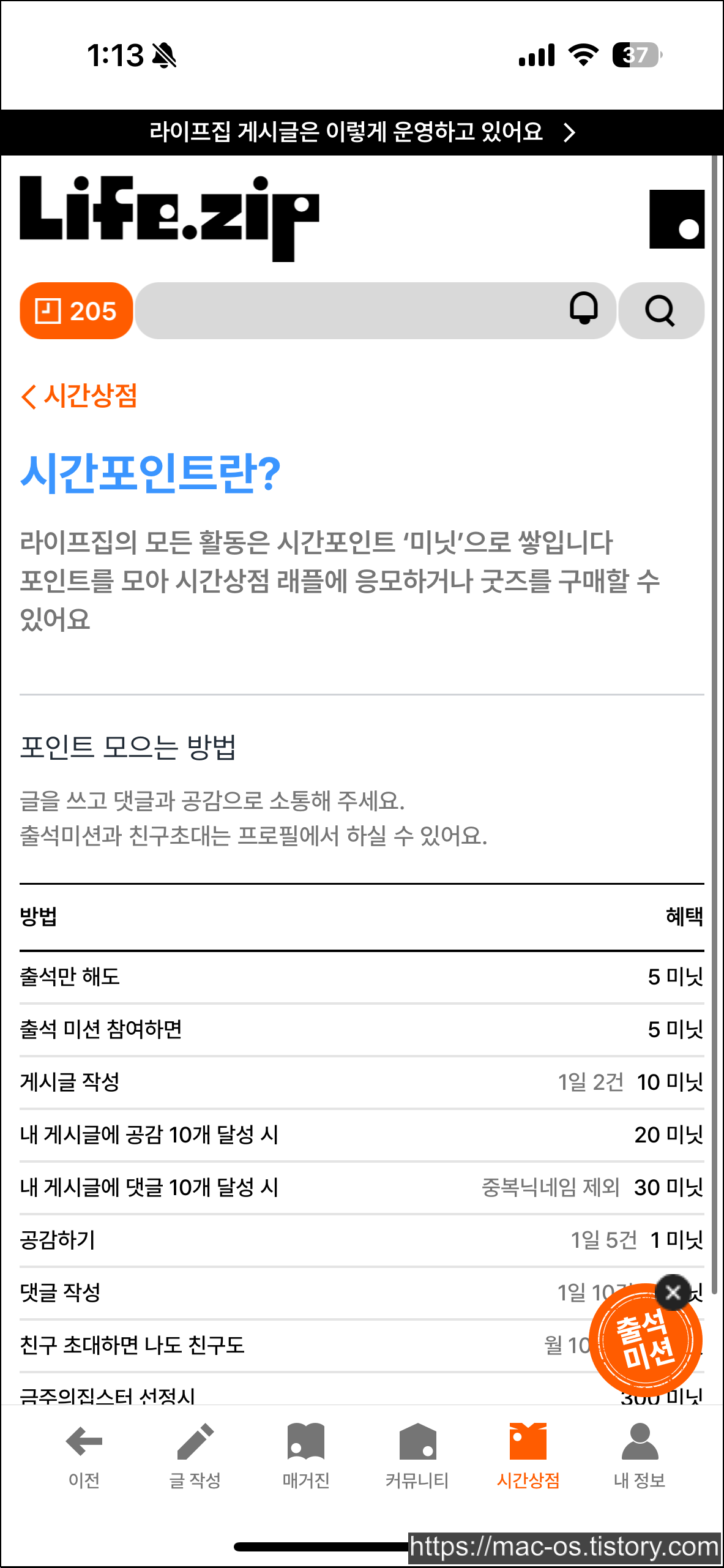 라이프집에서 활동하면 시간 포인트(미닛)을 받을 수 있어. 이 포인트를 모아서 다양한 상품을 구매하거나 이벤트에 참여할 수 있어.