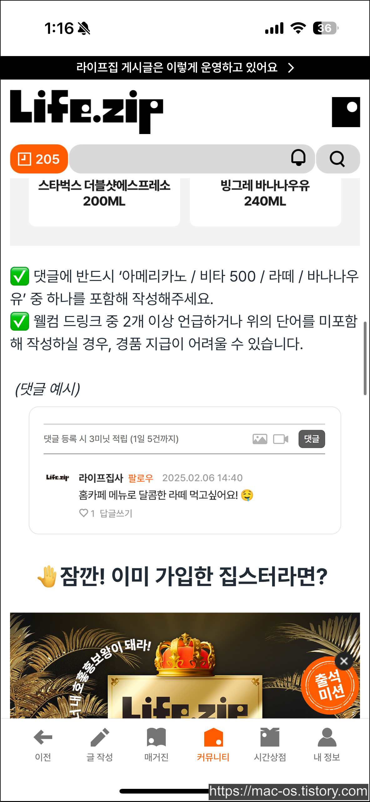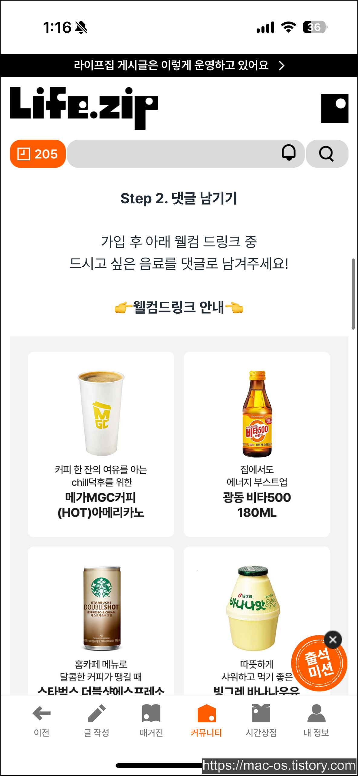 아메리카노 / 비타500 / 라떼 / 바나나우유 중 하나를 댓글로 남기면 끝!