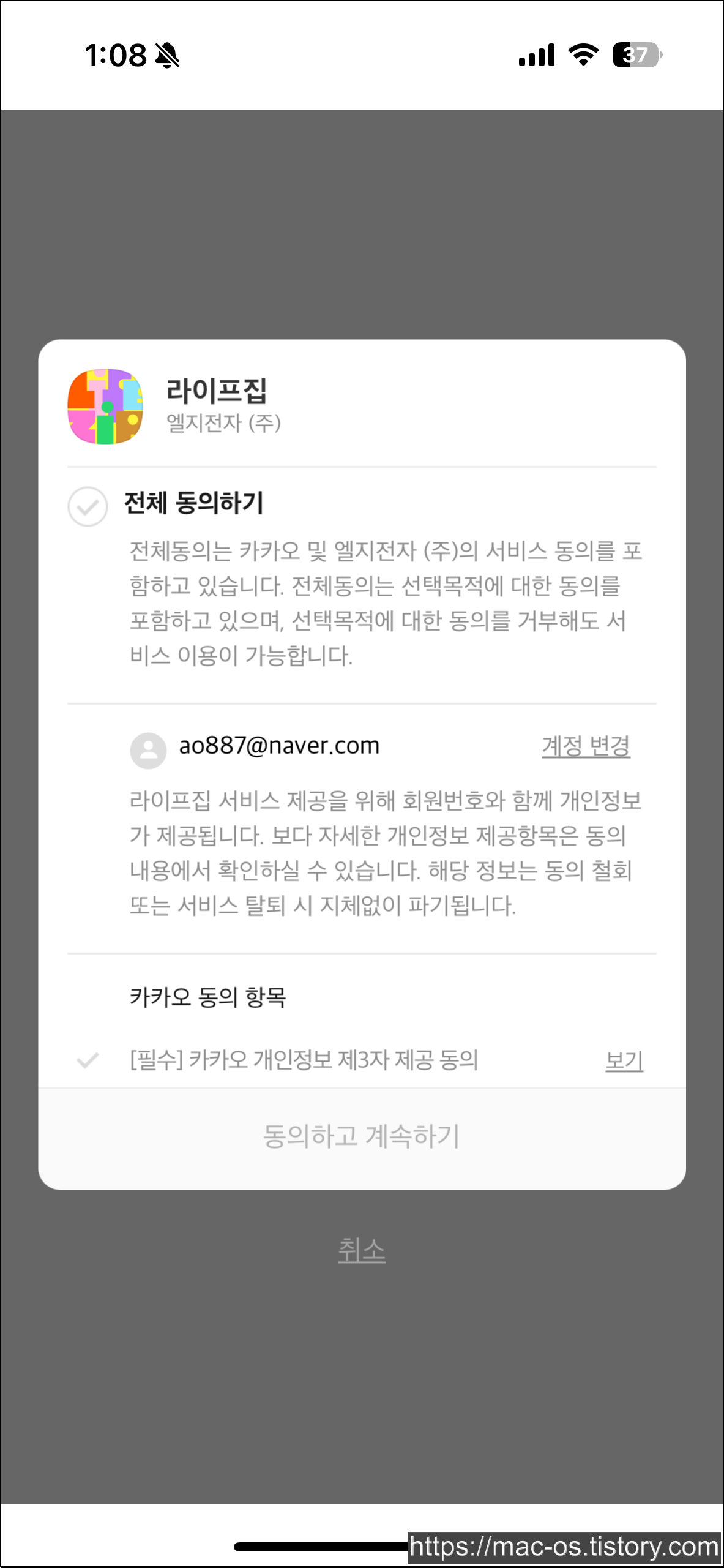 카카오로 3초만에 시작하기를 누르고 동의하고 계속하기를 눌러.