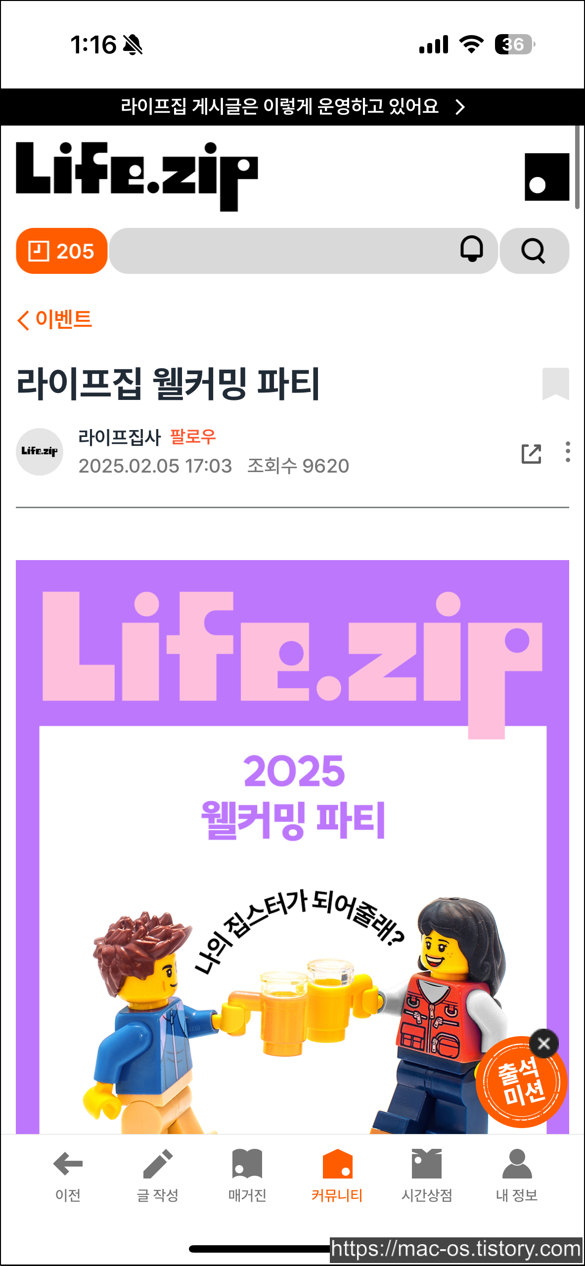 라이프집 웰커밍 파티는 아까 위에서 소개한 라이프집 회원가입 이벤트야. 홈 화면에서 [이벤트] > [라이프집 웰커밍 파티] 게시글로 이동하면 이 페이지에서 웰컴드링크 댓글을 작성할 수 있어.