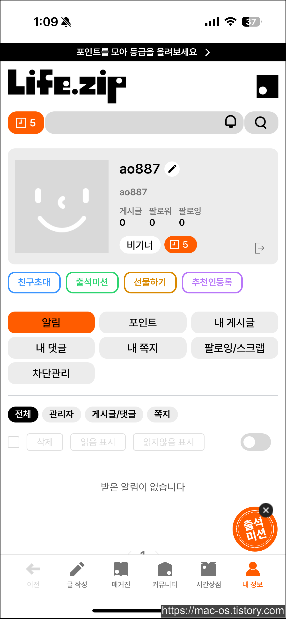 내 정보 페이지에서 [추천인 등록]을 누르고 ao887을 입력하면 100미닛을 받을 수 있어.