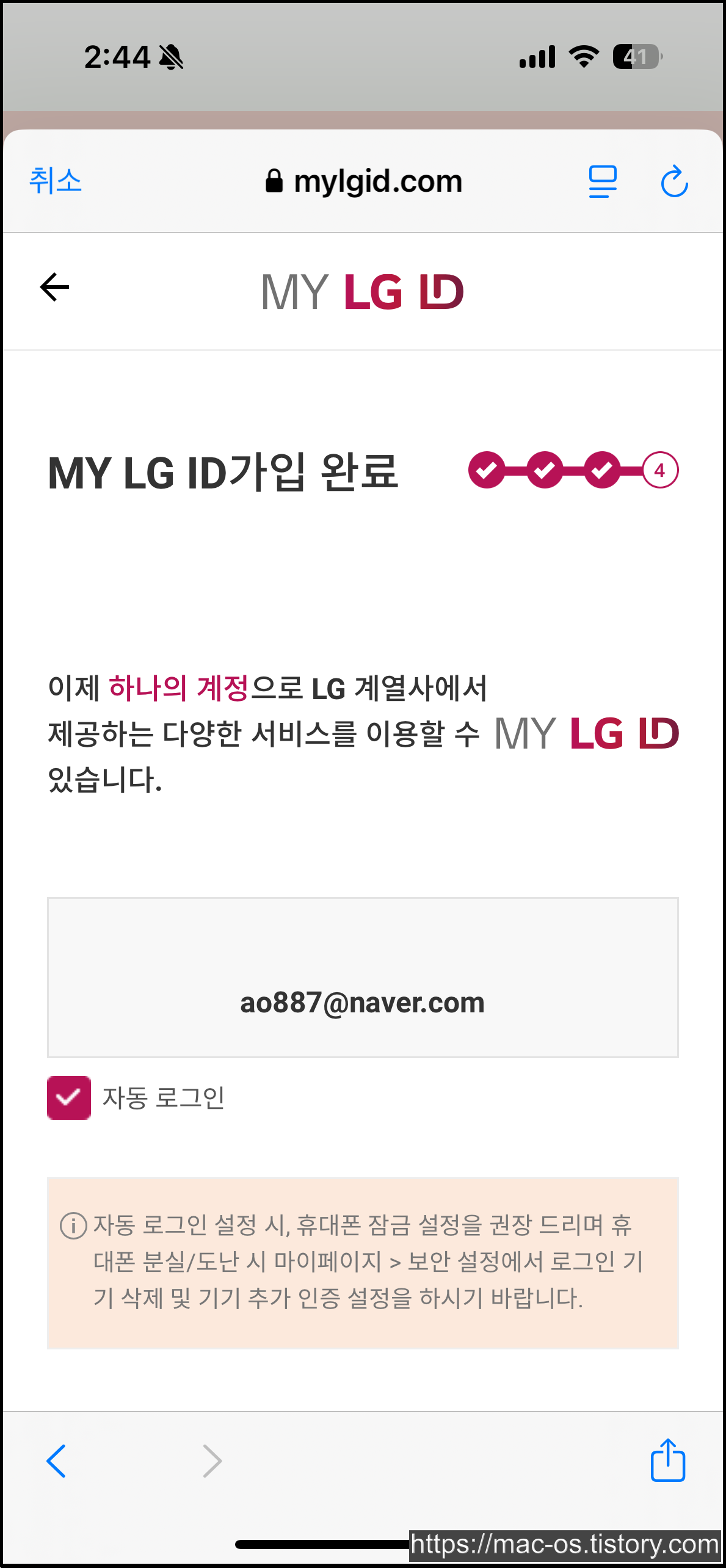 📌 MY LG ID 주요 기능