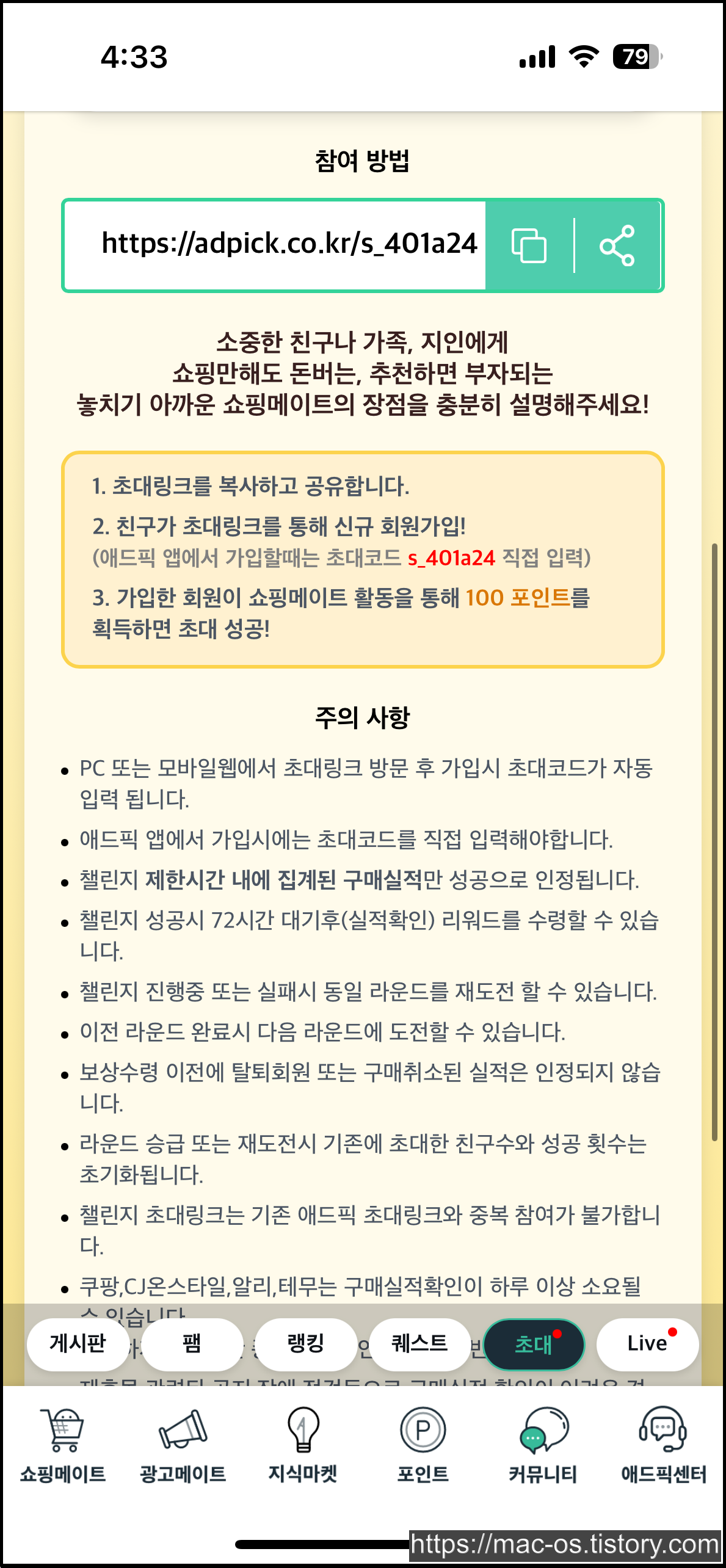 3. 신규회원은 쇼핑메이트 초대링크로 가입하면 3000포인트를 손해보는 셈이니 추천하지 않음