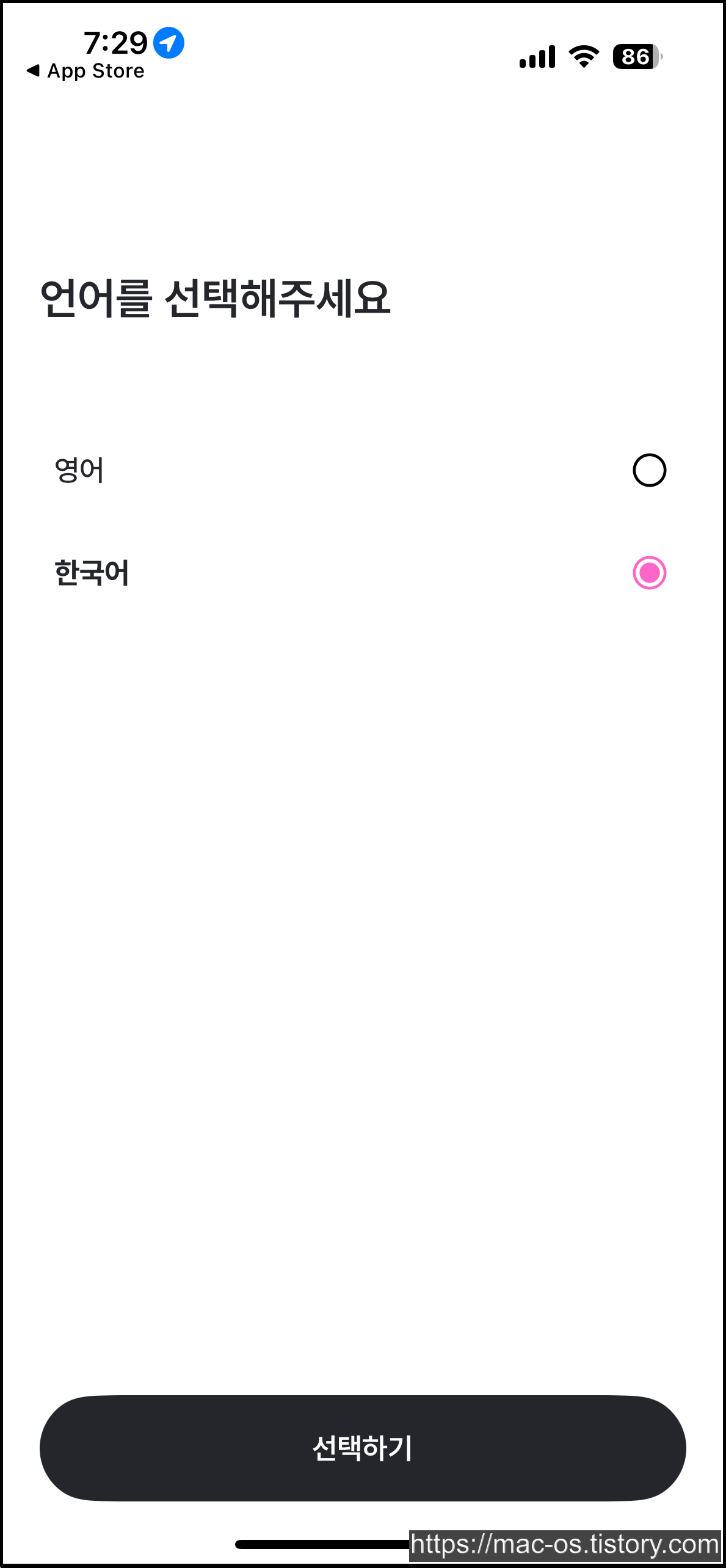 크로팟은 앱스토어에서 설치할 수 있습니다. 처음 설치하고 실행하면 언어를 선택하게 됩니다.