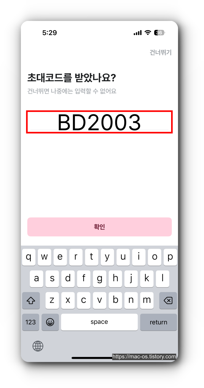 - 회원가입할 때 초대코드 입력 페이지가 나오는데 여기서 BD2003을 복붙하면 300포인트를 받고 시작할 수 있다.