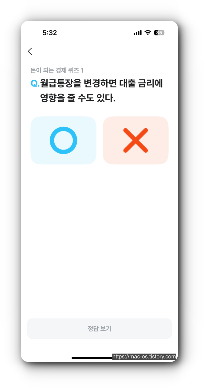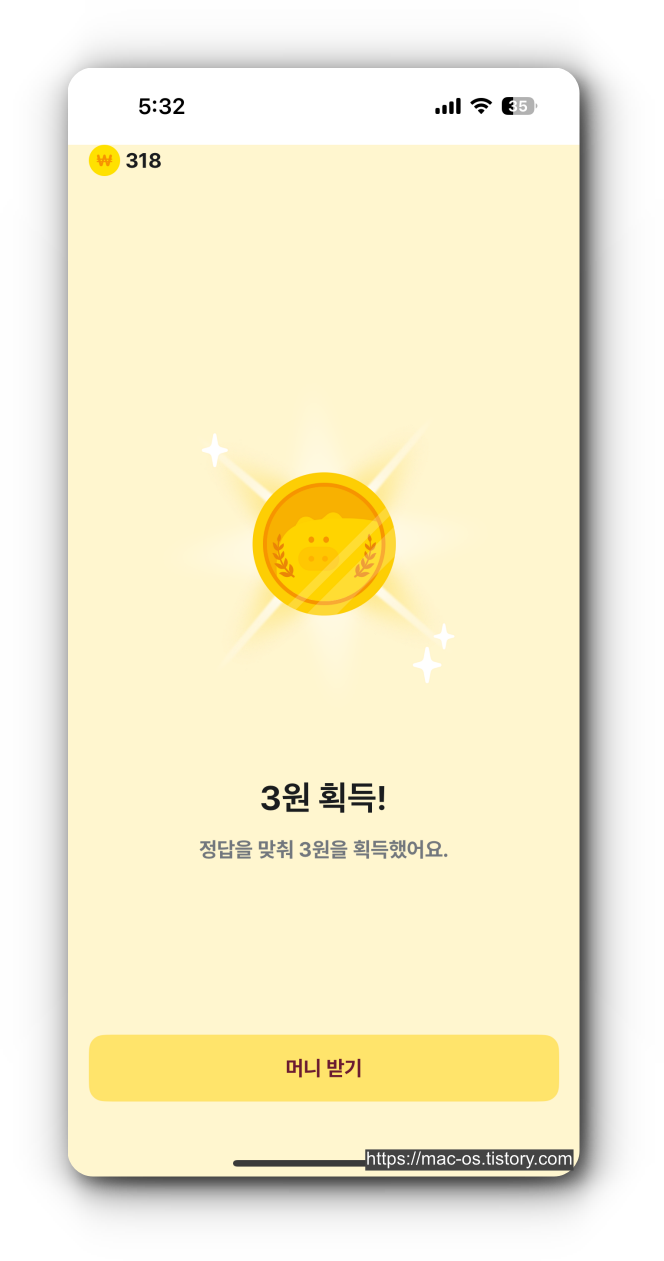 경제퀴즈 라는 것도 있는데, O/X 퀴즈를 맞추고 간단한 광고가 나오고 나서 3원을 받을 수 있다. 이건 여러번 푸는게 가능해보였는데 하루에 퀴즈 10번 정도?