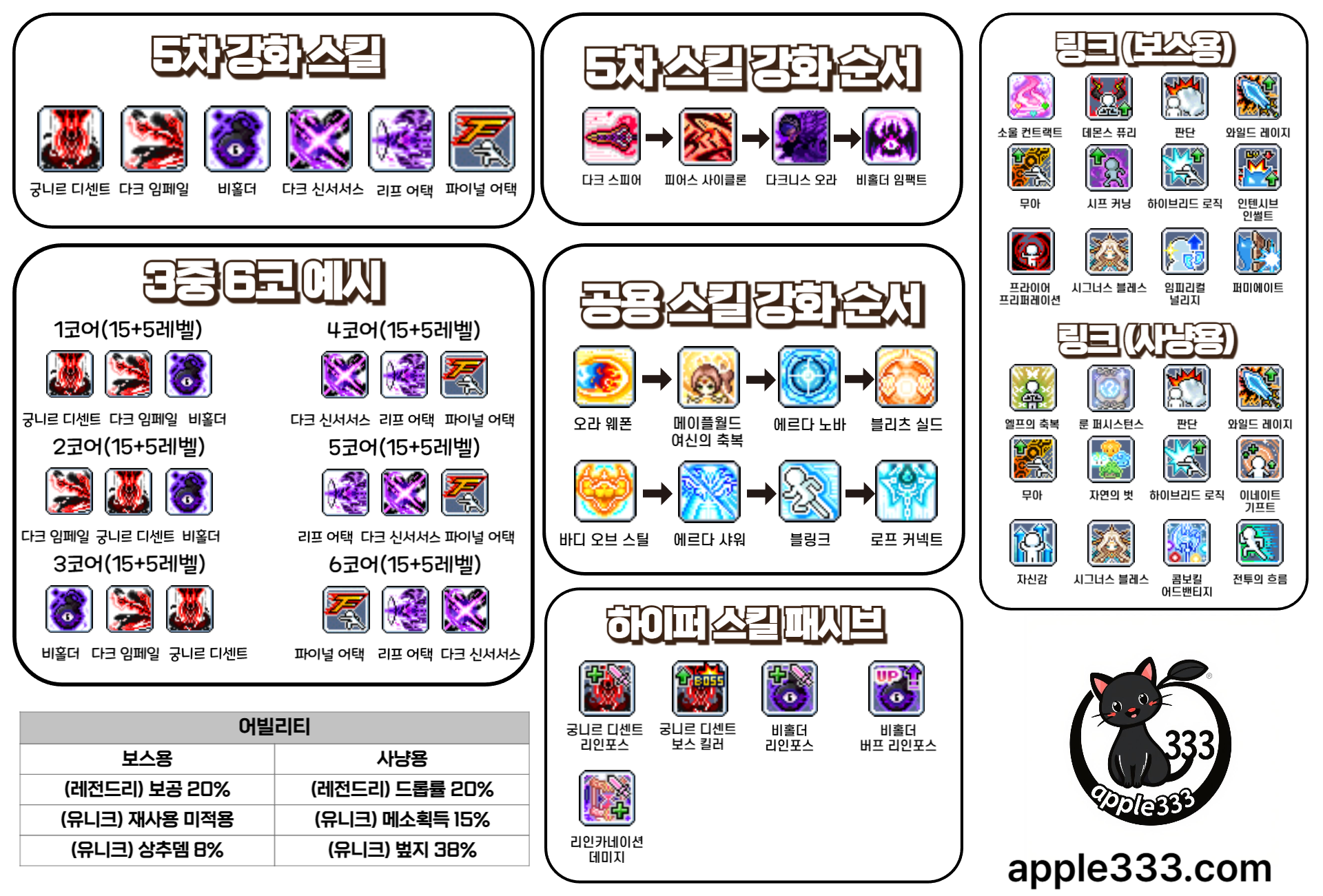메이플스토리 다크나이트 5차 공용 스킬 강화 순서