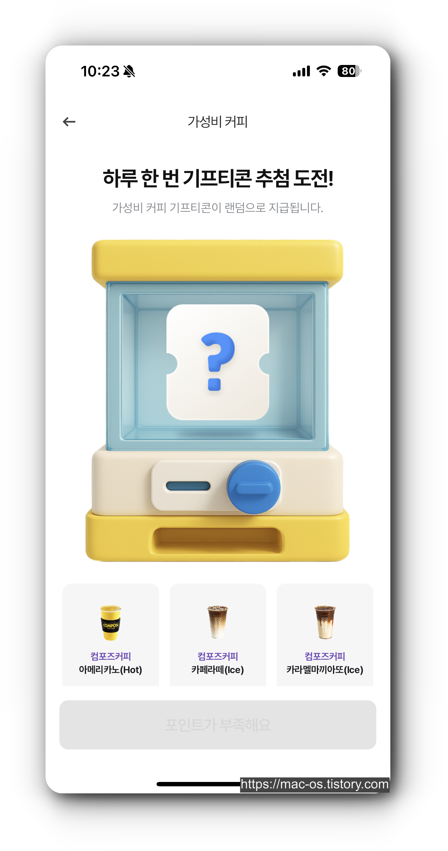 사용자는 원하는 브랜드를 직접 선택하는 방식이 아닌, 목록 내 인기 상품을 무작위 추첨을 통해 획득합니다. ‘꽝’ 또는 ‘무효’가 전혀 없으며, 항상 기프티콘 1종이 당첨됩니다. 각 브랜드의 인기 있는 상품이 중심이며, 일부 고가 상품이 당첨되는 기회도 함께 제공됩니다.