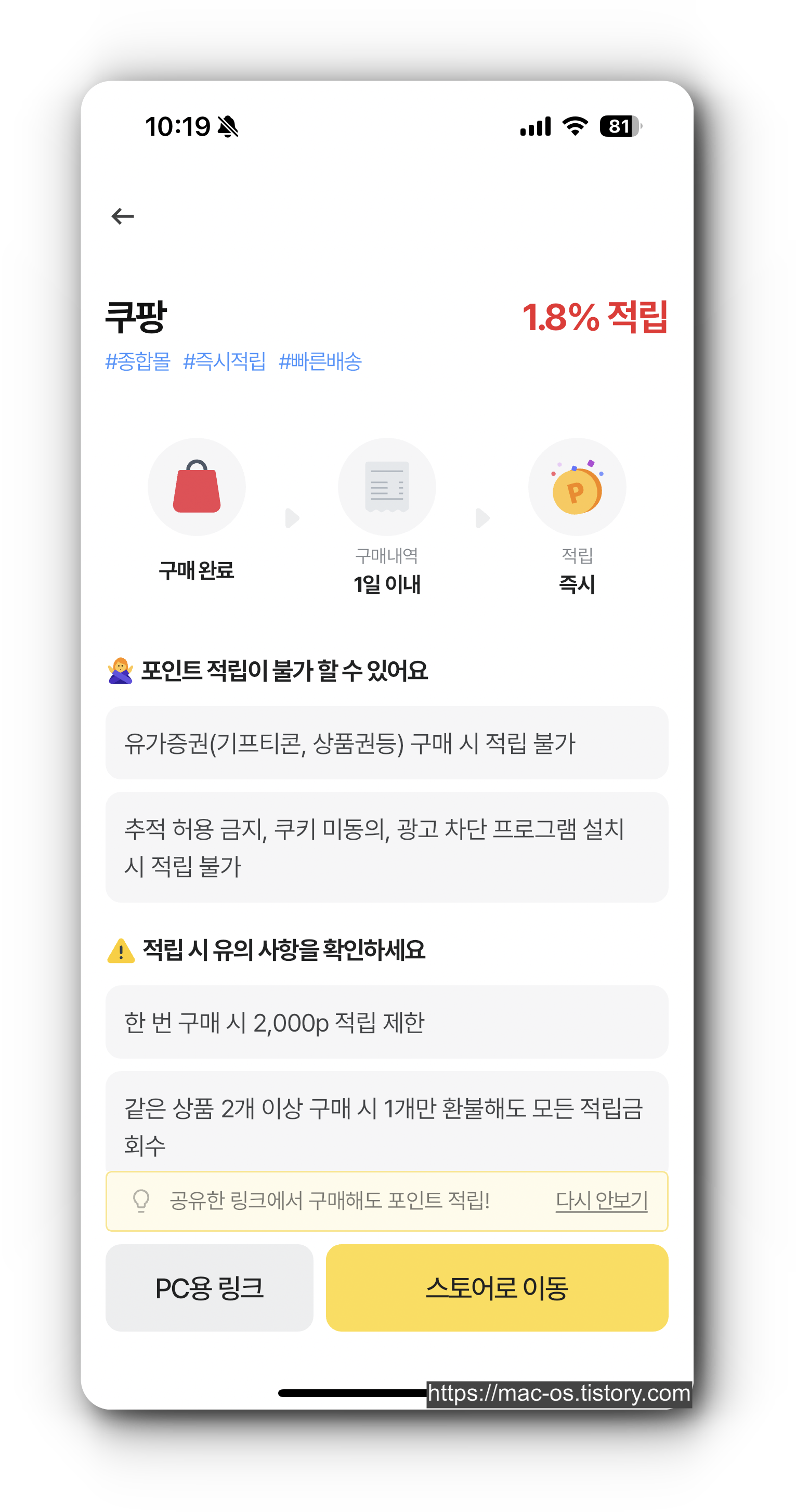 - 추적 허용 금지, 쿠키 미동의, 광고 차단 프로그램 설치 시 적립 불가
