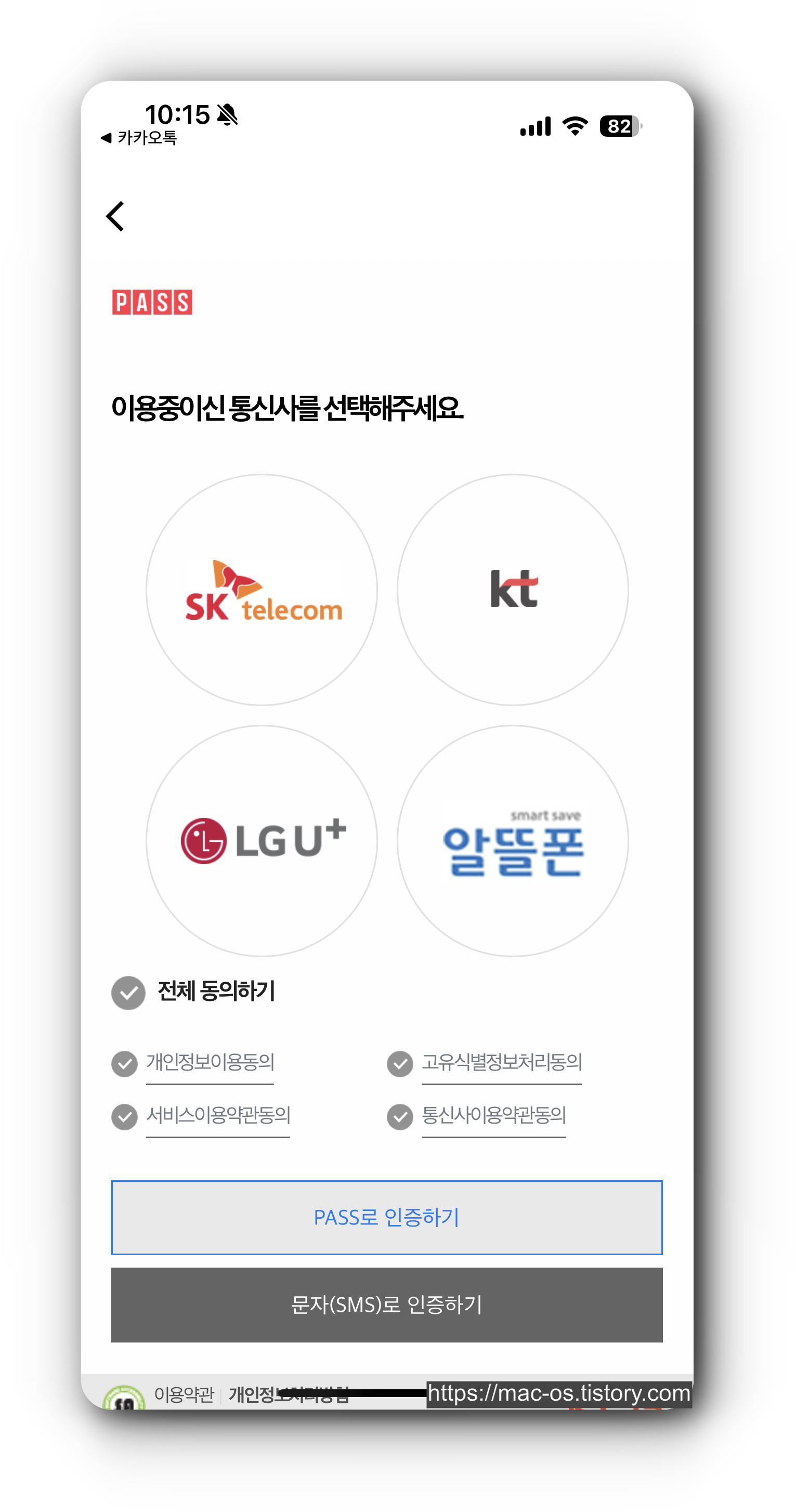 휴대폰 PASS 본인인증을 마치고 이용약관에 동의합니다.