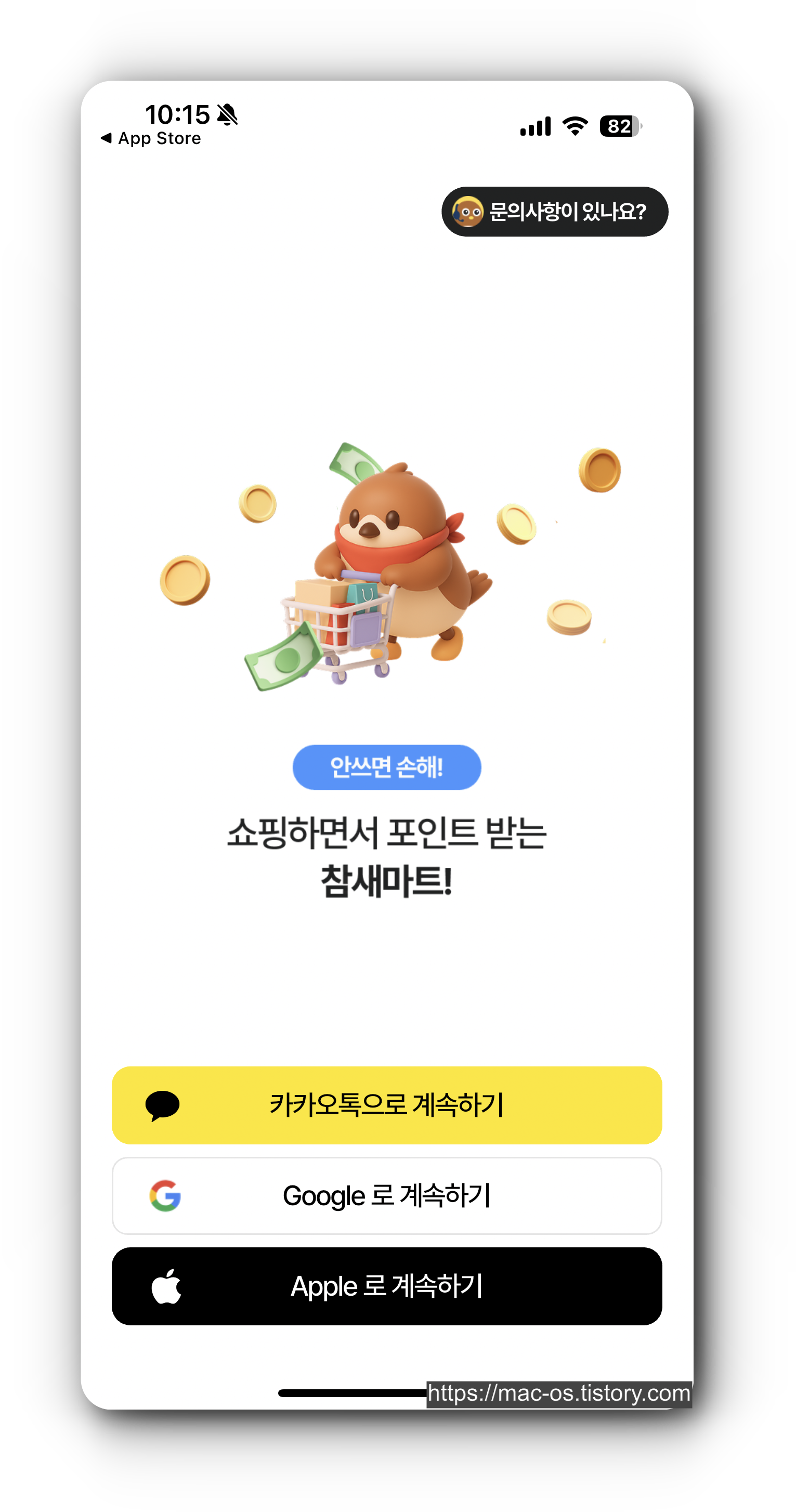 참새마트는 앱스토어에서 설치하여 카카오, 구글, 애플 계정으로 가입할 수 있습니다.
