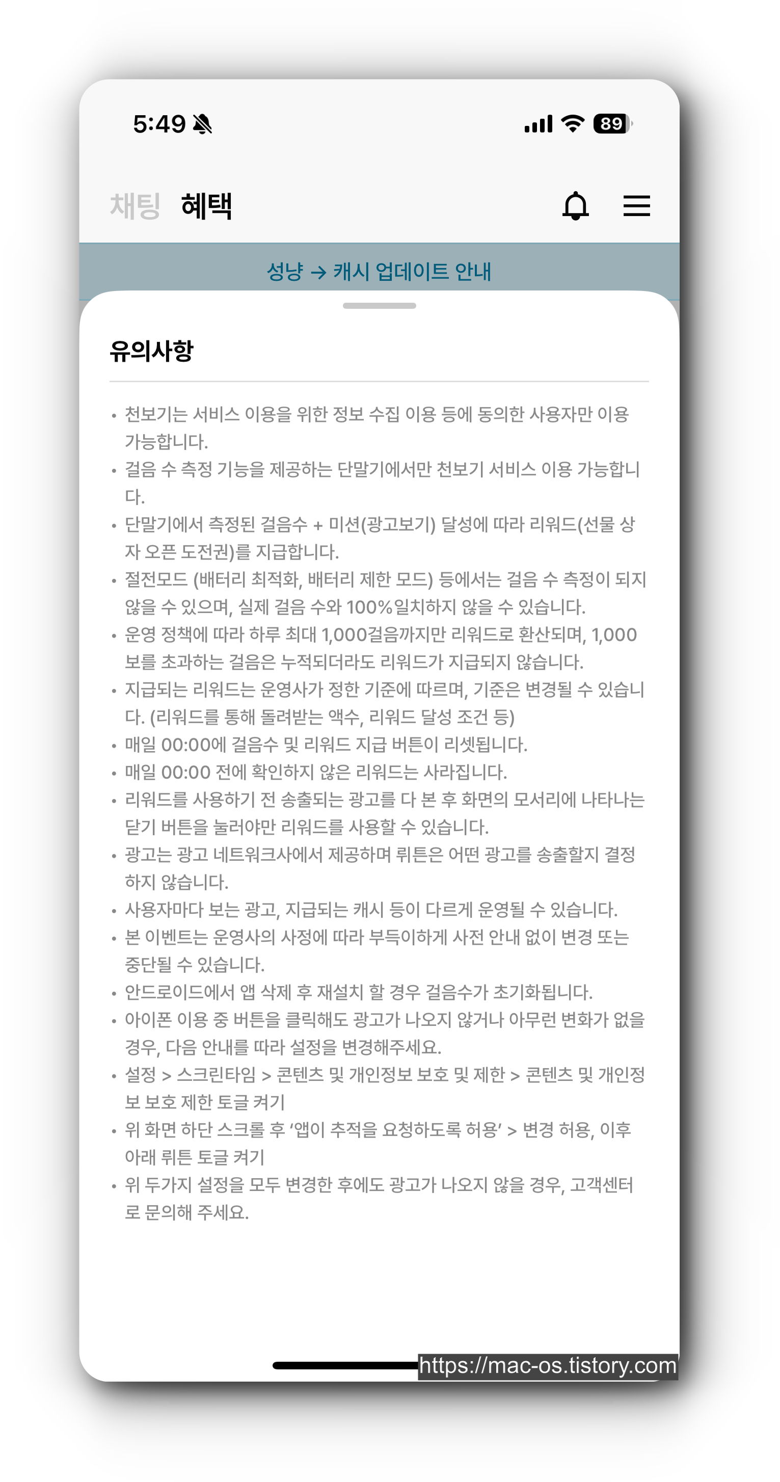 - 매일 최대 1,000걸음까지만 리워드로 인정됨 (초과분 무효