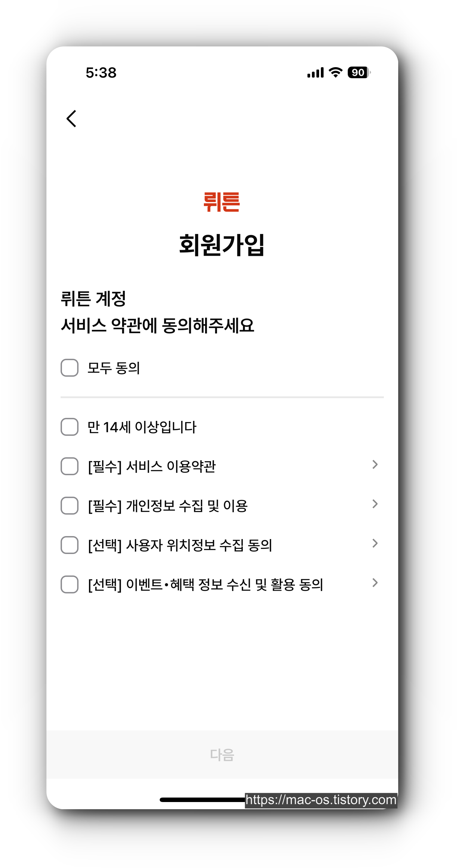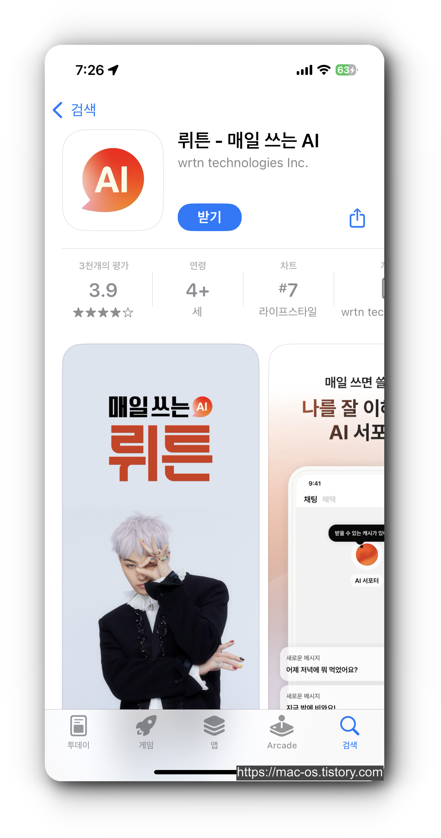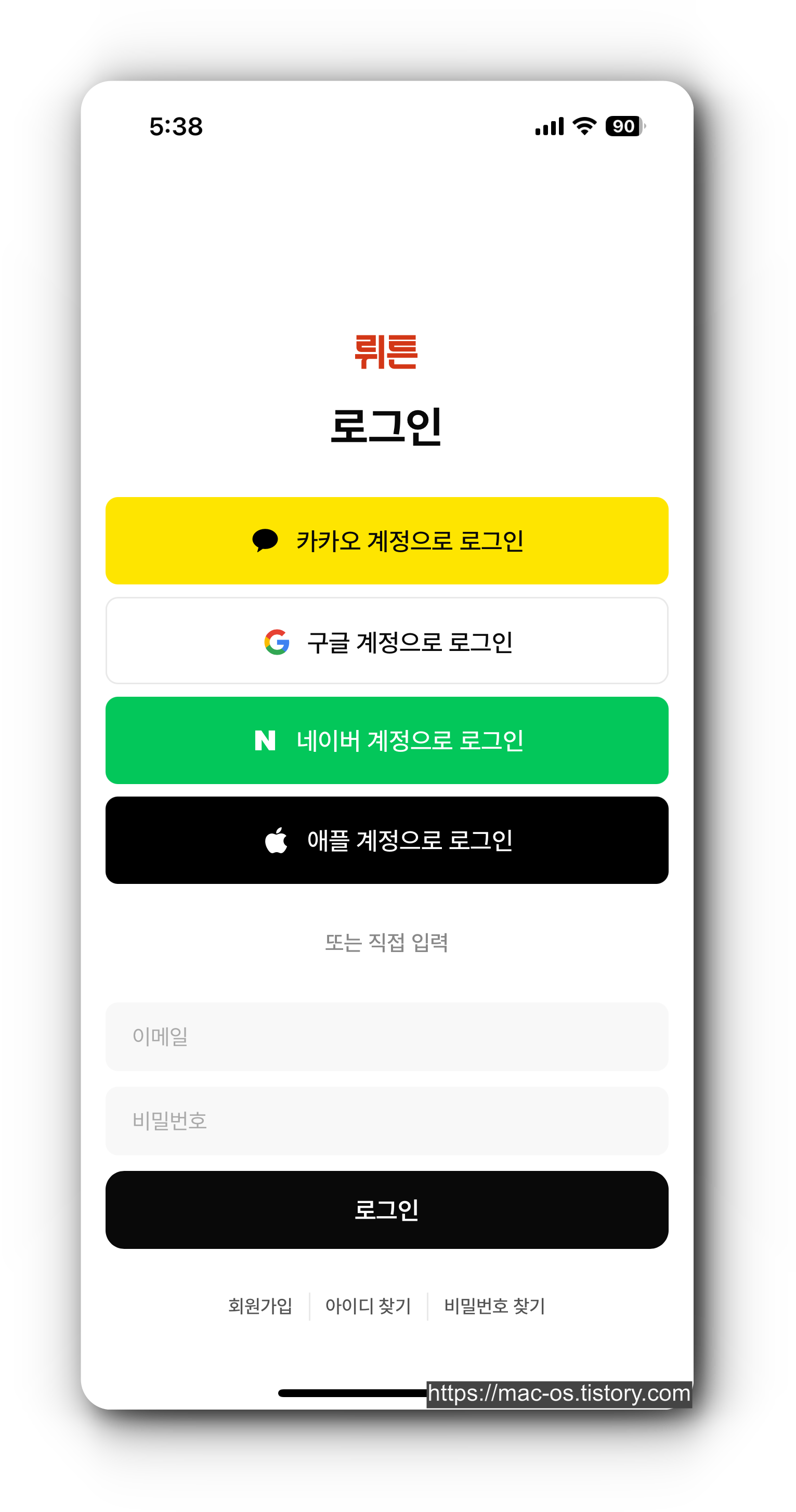 뤼튼은 앱스토어에서 설치할 수 있습니다. 카카오, 구글, 네이버, 애플 계정으로 로그인해서 로그인이 가능합니다. 저는 여기서 회원가입을 눌러봤습니다.