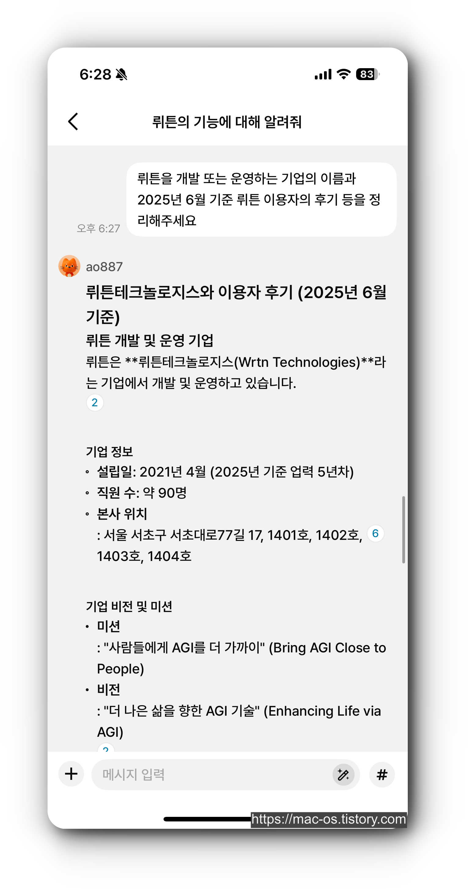 뤼튼을 개발하는 기업과 사용자 반응이 궁금해서 여러가지 질문을 해봤습니다.