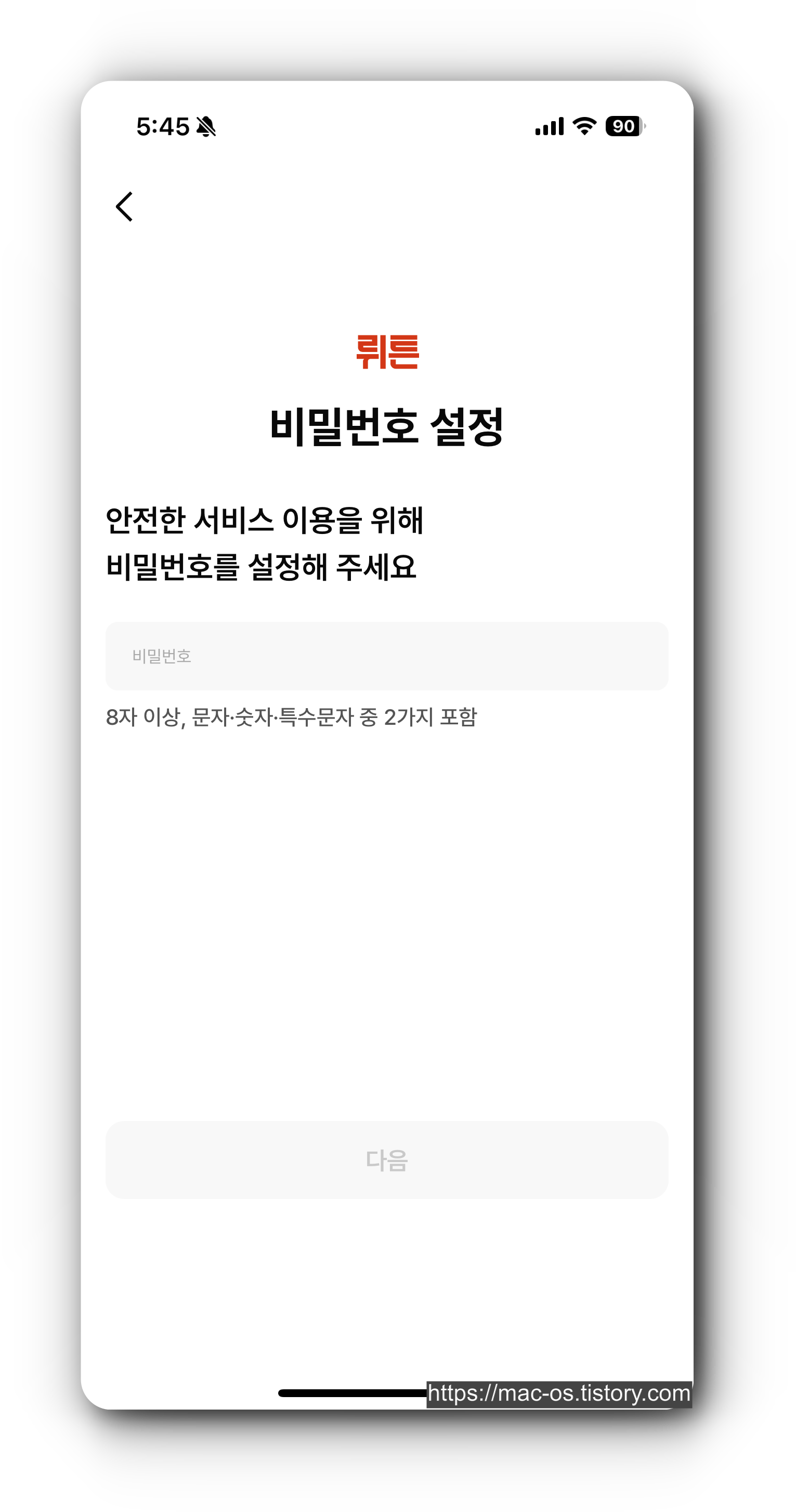 카카오 계정으로 로그인하면 뤼튼 약관과 비밀번호 설정을 하게 됩니다.